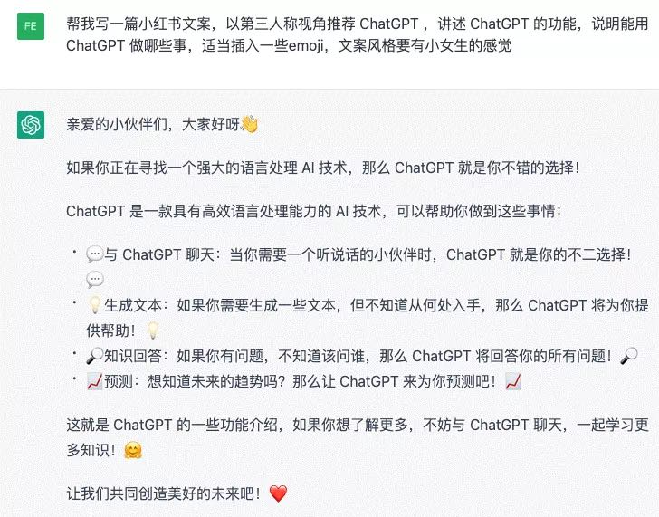 有网友让ChatGPT写一篇写小红书文案,写出来的内容段落清晰,文案里的emoji运用也十分恰当。