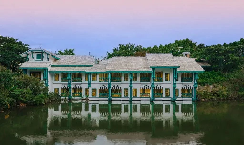 酒店占地 100 英亩,其建筑设计十分独特,融合了泰国传统建筑和现代元素,创造出了一种独特的混搭风格。
