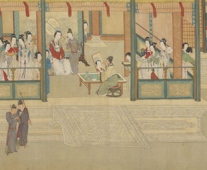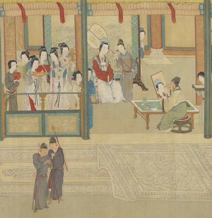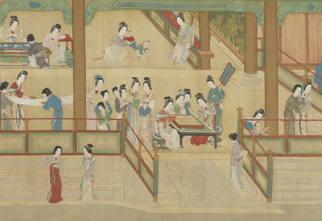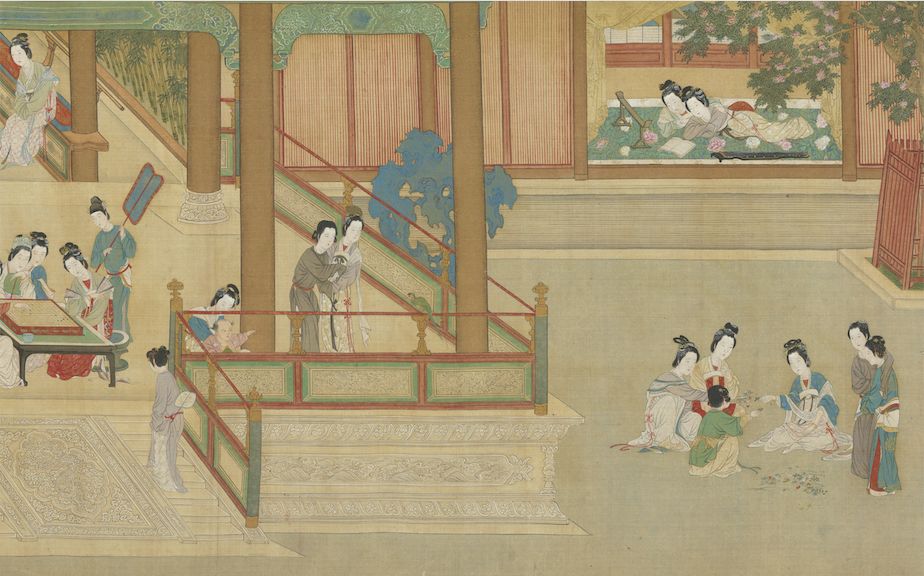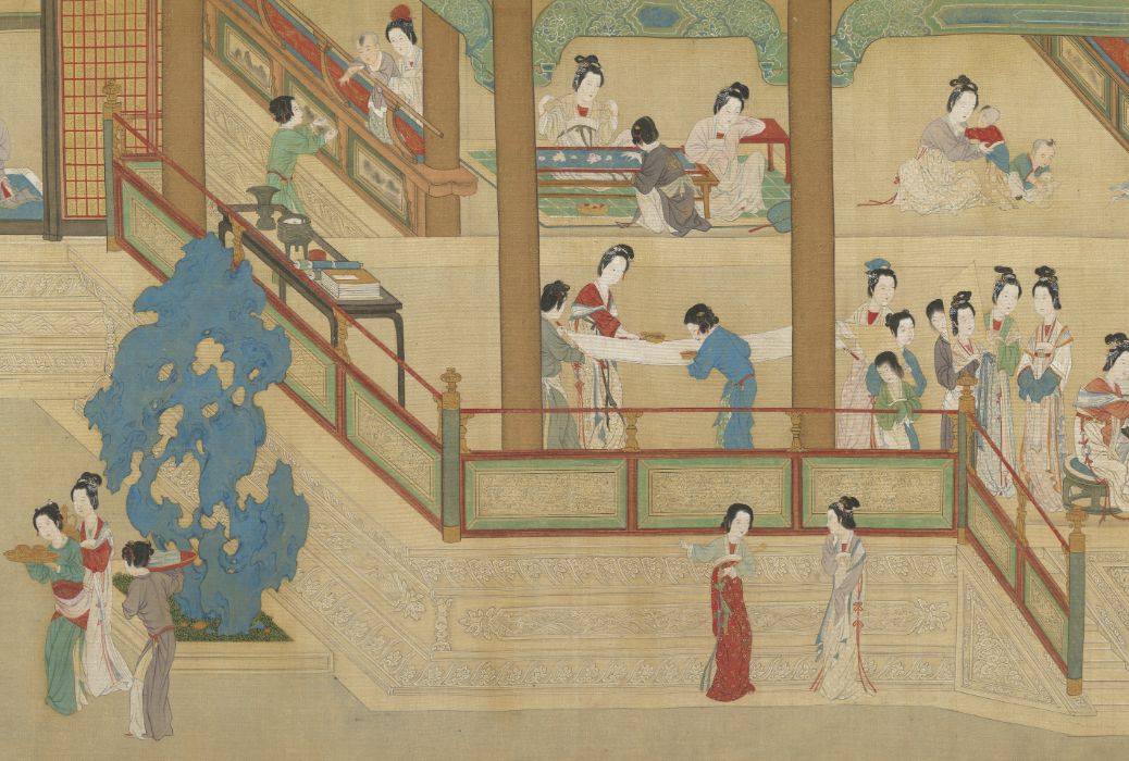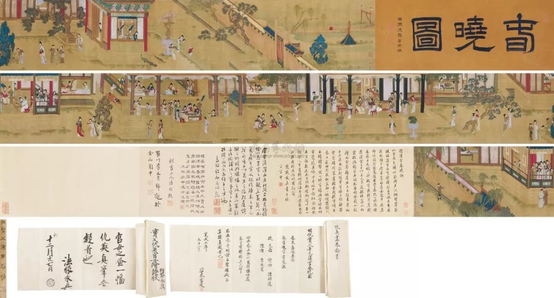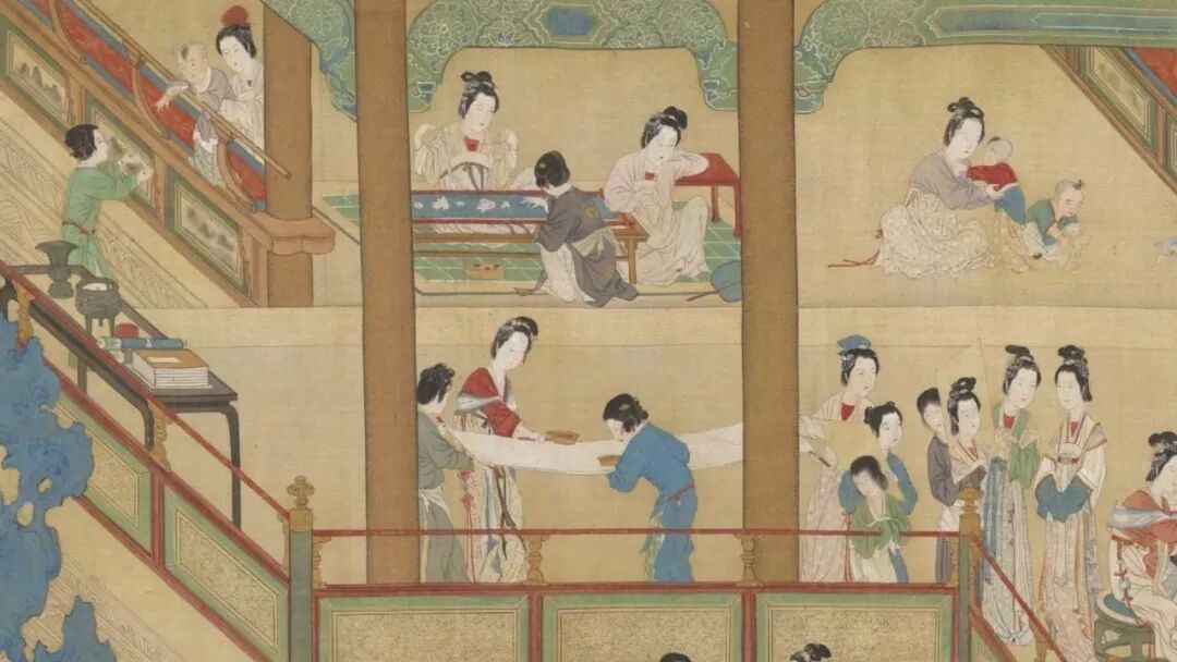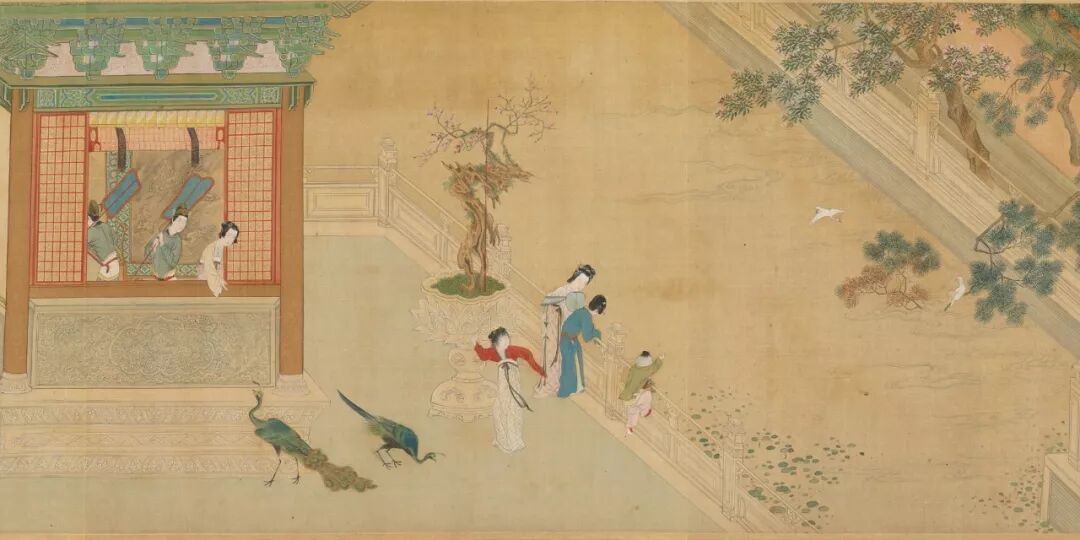 《汉宫春晓图》以鼎盛与繁华象征的「汉宫」,引人无限遐想的「春晓」为题,用华丽的笔墨再现了宫中嫔妃的日常。