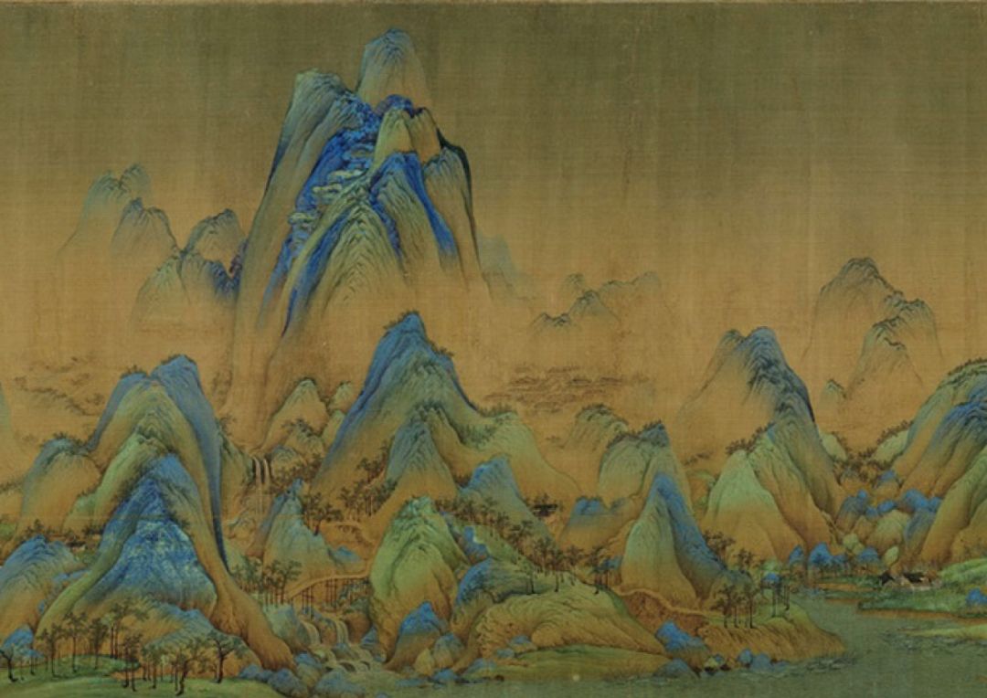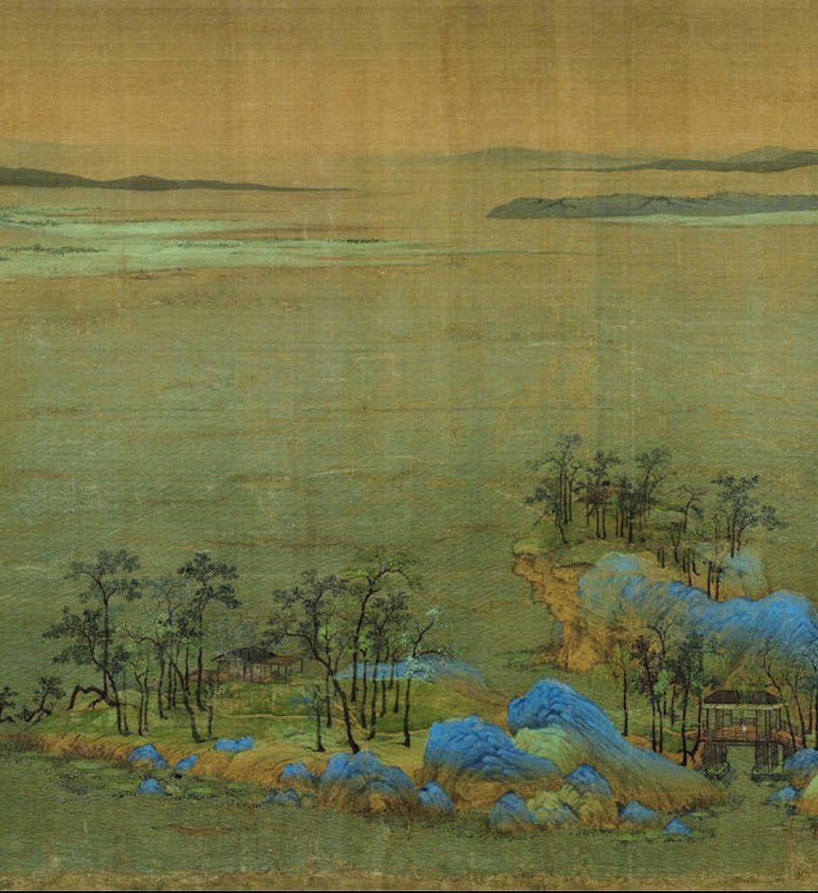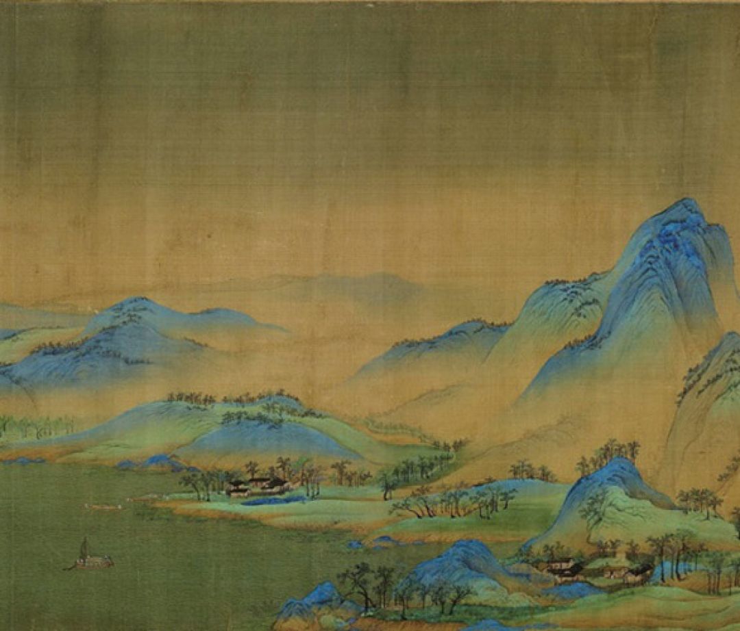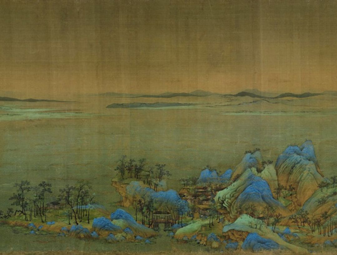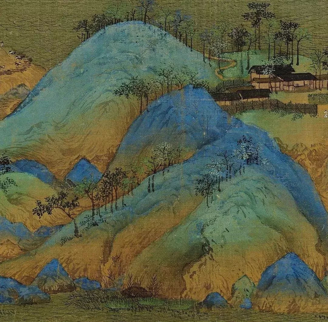 《千里江山图》描绘岗峦起伏的群山,和烟波浩淼的江南山水图。