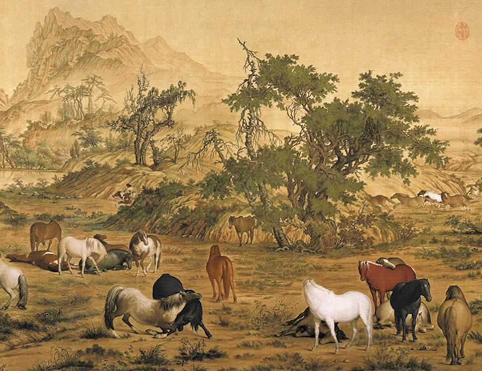 意大利人郎世宁,1715年以传教士的身份远涉重洋来到中国,被重视西洋技艺的康熙皇帝召入宫中,开始长达五十多年的宫廷画家生涯。