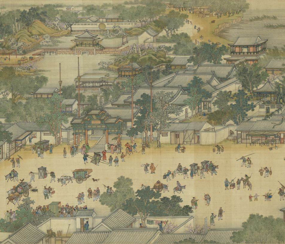 《清明上河图》以长卷形式,采用散点透视构图法,生动记录了12世纪,中国北宋都城东京的城市面貌,以及当时社会各阶层民众的生活状况。