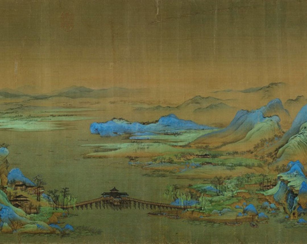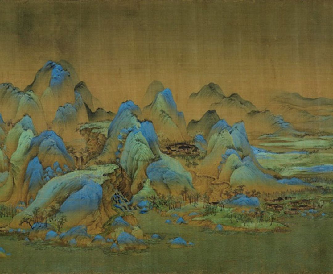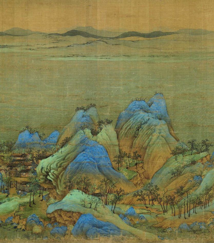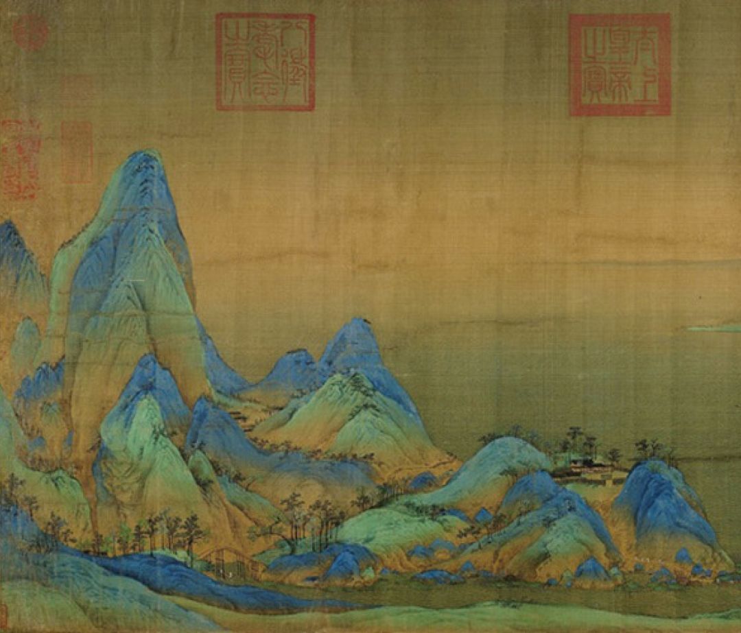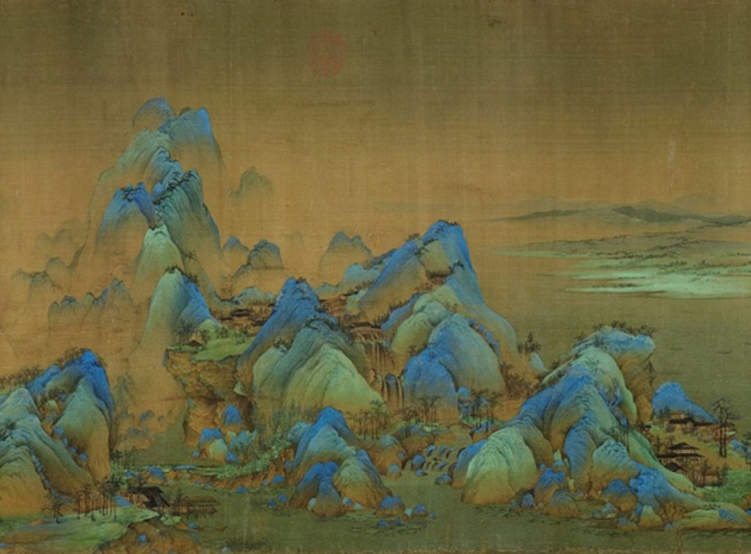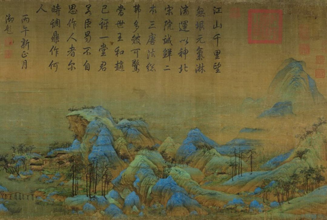 《千里江山图》雄浑壮阔,气势磅礴,既写实又富理想。不仅代表着青绿山水发展的里程,且集北宋以来水墨山水之大成,是「中国五大传世名画」之一。