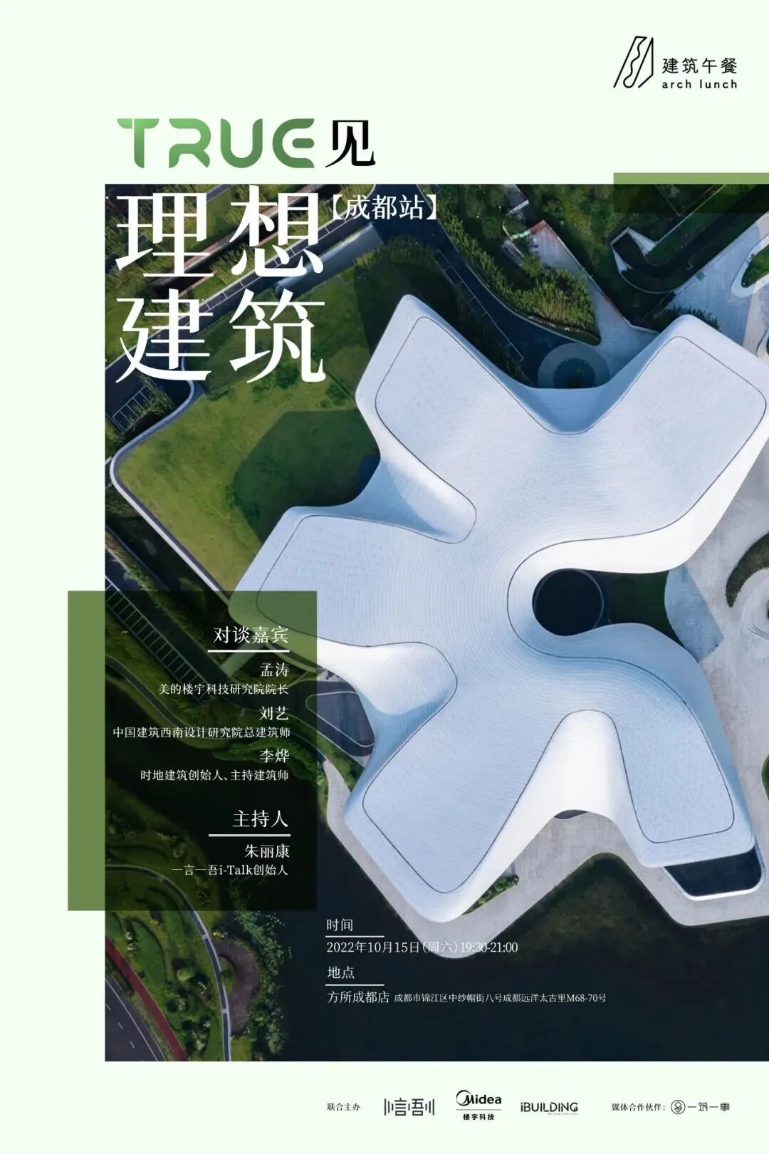 在「公园城市」中,围绕理想建筑的讨论也从未停歇。10月15日晚,一言一吾i-Talk来到成都方所书店,与美的楼宇科技研究院院长孟涛、中建西南院总建筑师刘艺和时地建筑创始人、主持建筑师李烨一起,从自然、宜居、智慧三个方面讨论:如何在公园城市打造理想建筑。