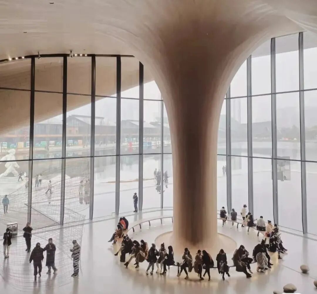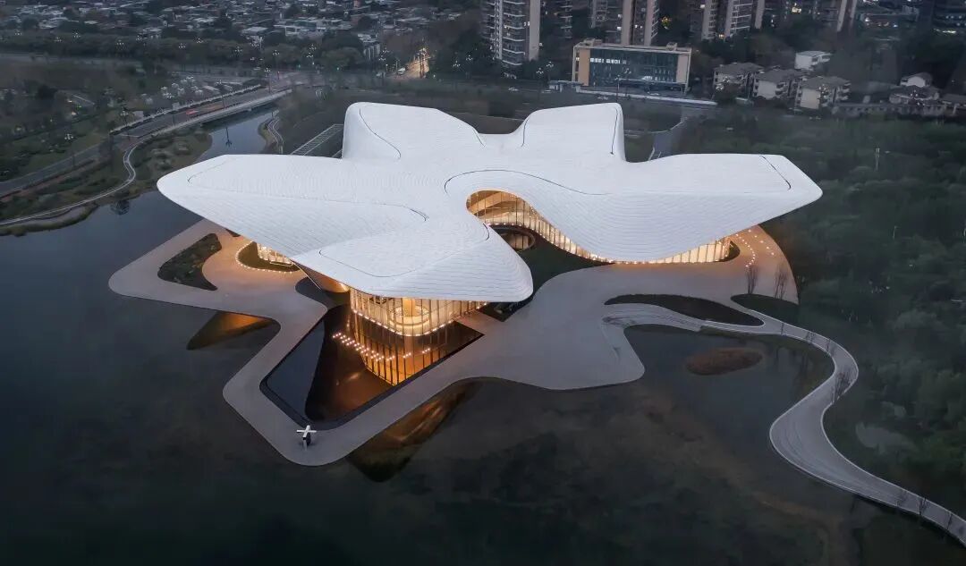 成都天府艺术公园通过改造把城中村变成了公园——将美术馆、图书馆安放在公园里,周边还将配套10万平米的艺术街区。刘艺设计的「天府美术馆」犹如公园湖畔一朵绽放的白色花朵,大屋檐实现了对雨水和日照的控制,曲度设计带来丰富的空间体验。刘艺表示:“当下人们的日常体验都是从手机屏幕上去获得的,所有的人生经历和阅历,我们的喜乐都集聚到一个小小的屏幕。我希望美术馆空间是一个让你去超越日常感知、获得一些新的体验和想象维度的一个地方。”