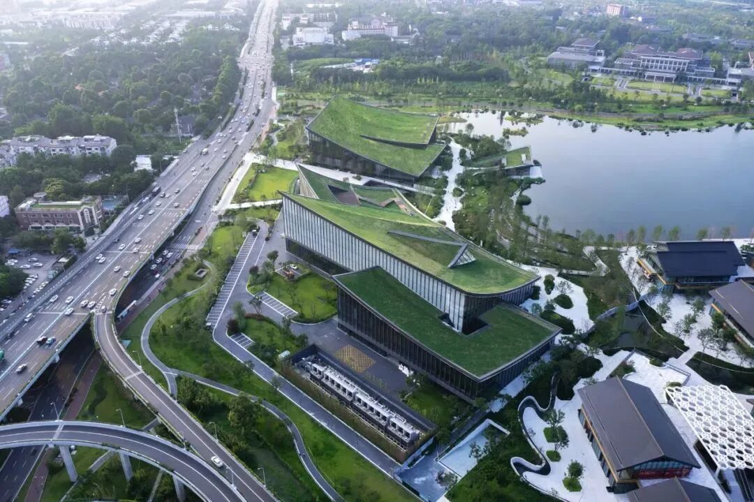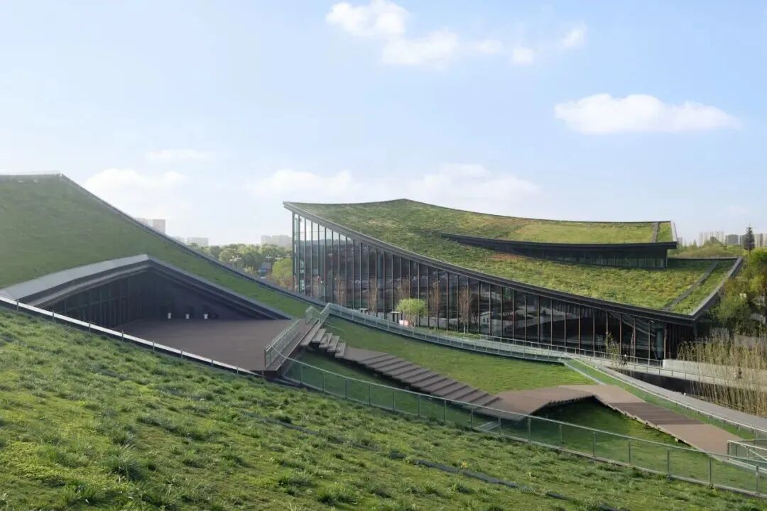 建筑师刘艺近年来一直在参与成都公园城市的建设,他的最新作品「当代艺术馆与人文图书馆」位于成都天府艺术公园内,绿色的坡顶模糊了自然与城市的边界,也形成一道人工的屏障,阻隔了城市的噪音和杂乱的视线。与此同时,这座建筑还塑造出了一种山的意象,与远处的雪山遥相呼应,契合着成都“与山为邻“的文化本源。