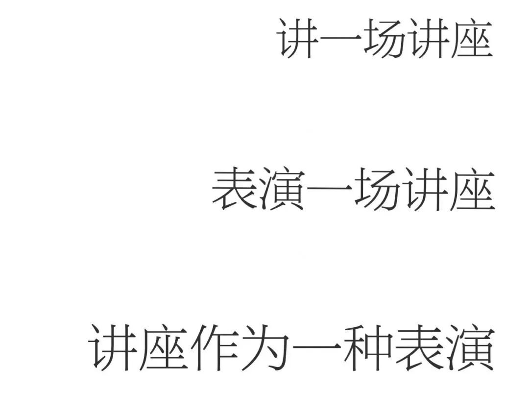 那什么是“讲座剧场呢”?打个比方,舞蹈可以作为一种表演的形式。在这里,是把“讲座”也变成了一种表演的形式。