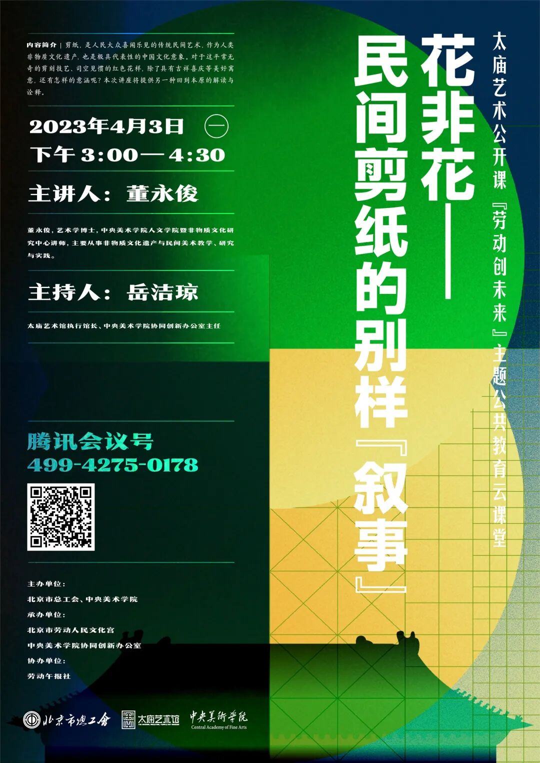 为庆祝党的二十大胜利召开,弘扬“劳动最光荣、劳动最崇高、劳动最伟大、劳动最美丽”的社会风尚,体现“劳动创造生活、劳动创造幸福、劳动创造未来”的理念,满足广大职工业余文化需求。2023年北京市劳动人民文化宫面向首都各级工会组织及会员开设太庙艺术公开课:“劳动创未来”主题公共教育云课堂系列课程。