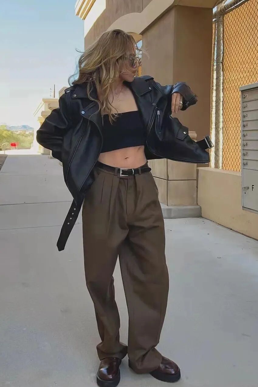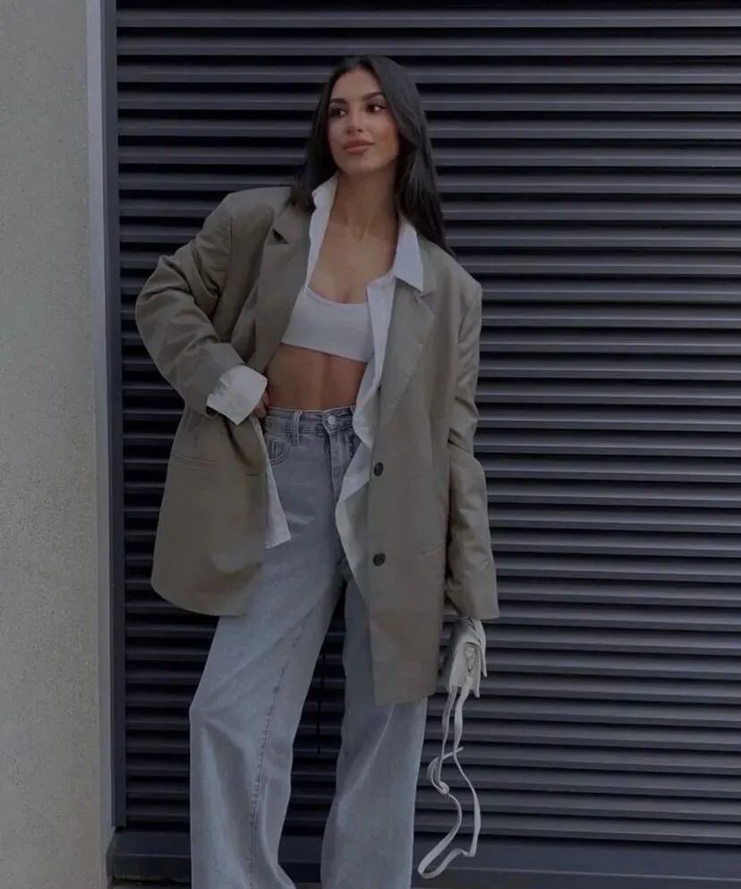 逛逛ins你就会发现大廓形外套搭配运动bra已经成为时尚博主的标配,谁没有穿过这套look都out了。其简单的搭配方式也是众多人偏爱的原因。