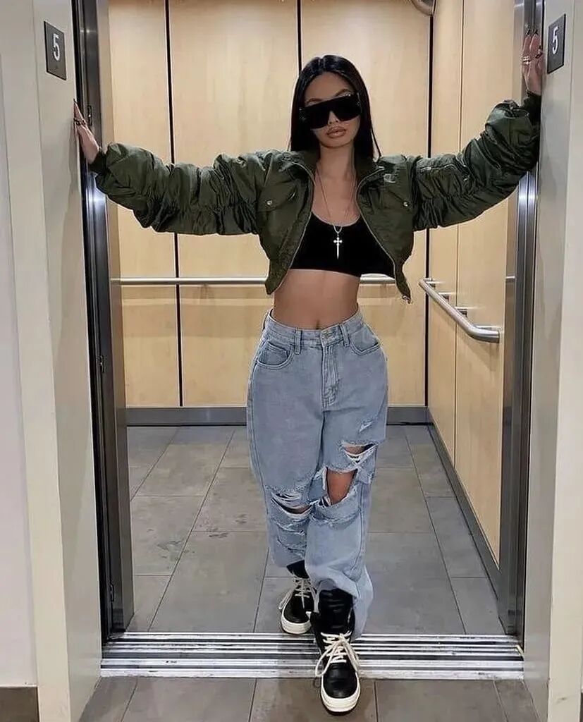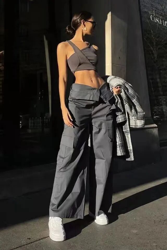 露肚脐上衣搭配阔腿裤在避免臃肿的同时还带来了性感,精心搭配的比例让视觉效果拉满,身高2米腿长1.8米,搭配起来也十分的多样。