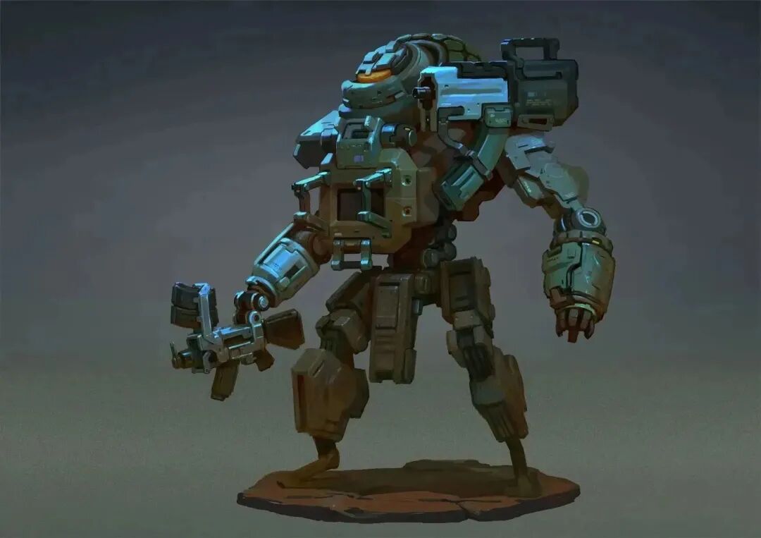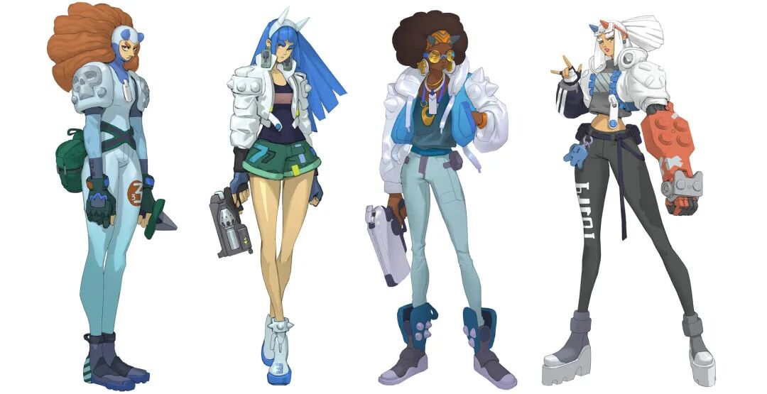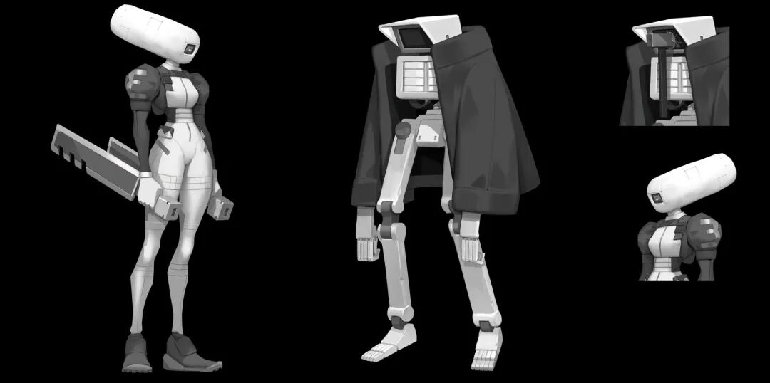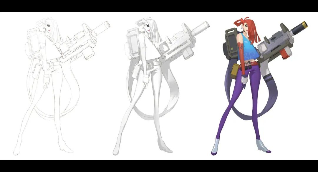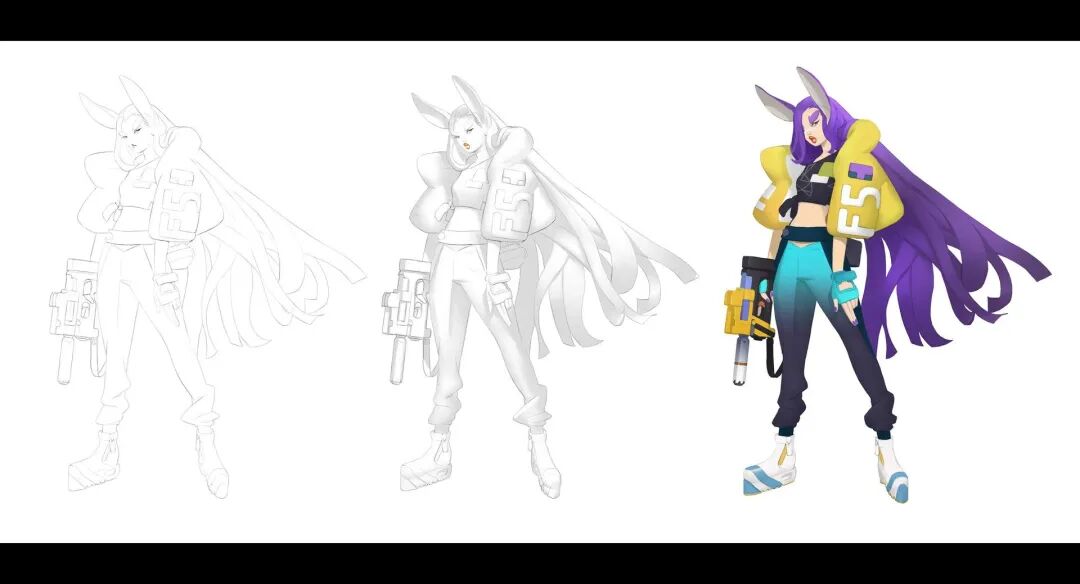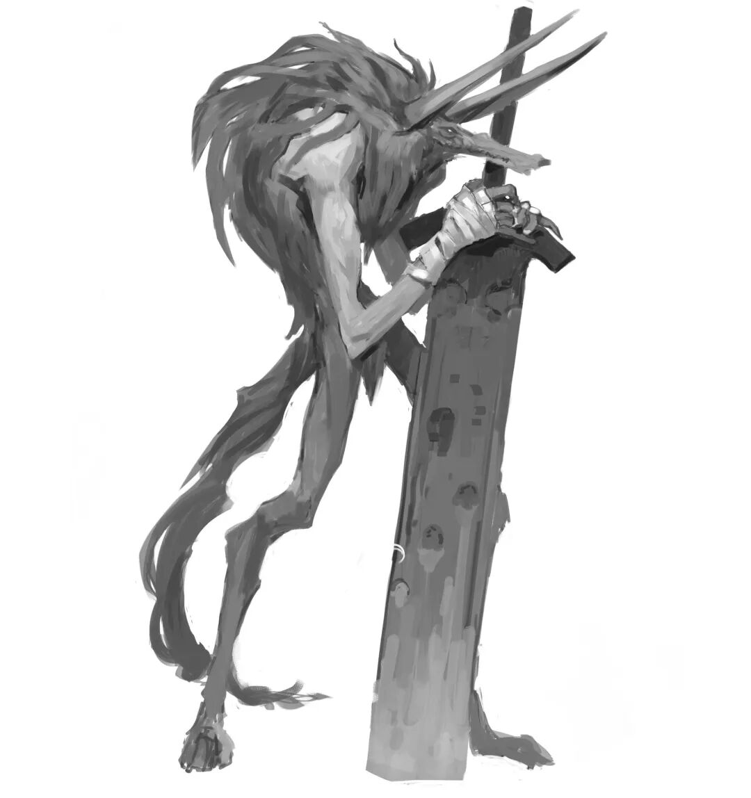 他笔下的人物往往拥有一双逆天的大长腿,动物和机械的融合脑洞很大,结构比例略显夸张,服饰怪异但细节满满,整体设计感十足。