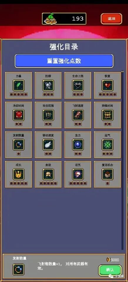 金币就是拿来强化角色的,让角色跑得更快,攻速更高等。理论上来说,一个完全没强化过的角色是很难撑到30分钟的,一个强化满的就较为容易,所以这游戏的每一次死亡都是一种积累。