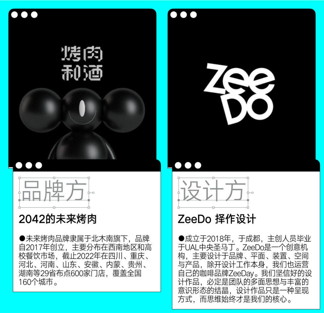 2042年,外星人开设了一家烤肉店,因注重效率和文化差异都将设计变得单一且功能性高,所谓人造科技感变得习以为常,来自不同文化下的肉类产品成为了核心,如同开在星际高速边的太空公路餐厅。”这是本次设计的主题。