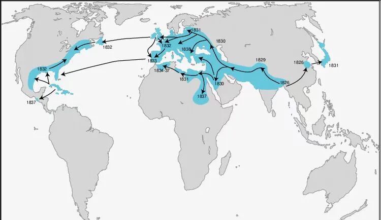 迄今为止,世界范围内已经发生了七次霍乱大流行,而实际上,霍乱在地球上从未消失过,我们一直处在第七次霍乱大爆发的时期之中,它一直蛰伏在世界各国隐秘的角落,伺机而发。