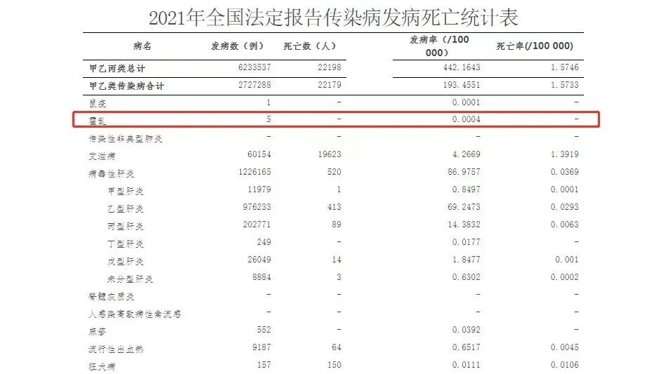 即使在中国,近几年也有零散霍乱病例报告出现,比如2021霍乱报告病例5例(无死亡),2020霍乱报告11例(无死亡)。