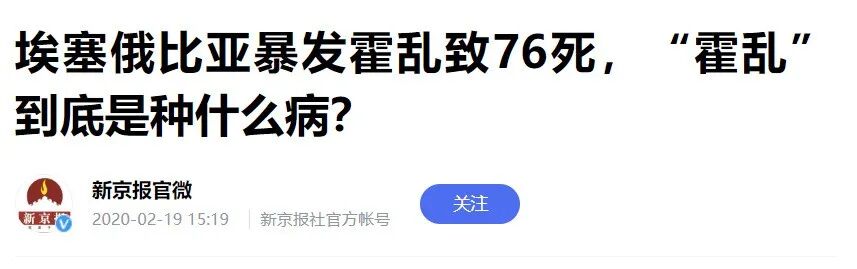 2020年2月15日,埃塞俄比亚多地爆发霍乱疫情,造成至少76人死亡。