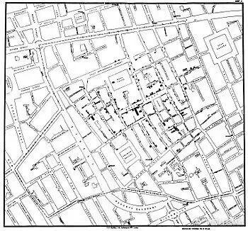 此时,一位名为约翰·斯诺(John Snow)的伦敦医生却对瘴气理论将信将疑,而是更相信疾病来自于严重的水污染病菌,但由于彼时的疾病细菌学理论尚未建立,斯诺无法肯定自己的判断,随即独立展开了疾病传染源的调查。
