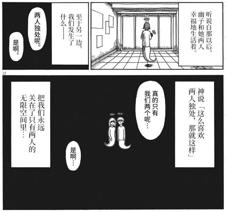 另一边渴望二人世界的幽灵先生和幽灵小姐,实现了自己的愿望,被神关在了只有两个人的无限空间里。