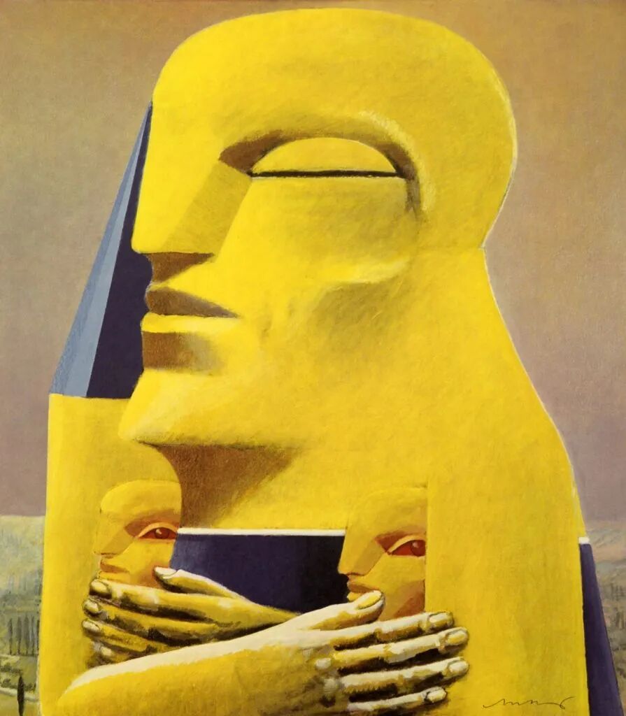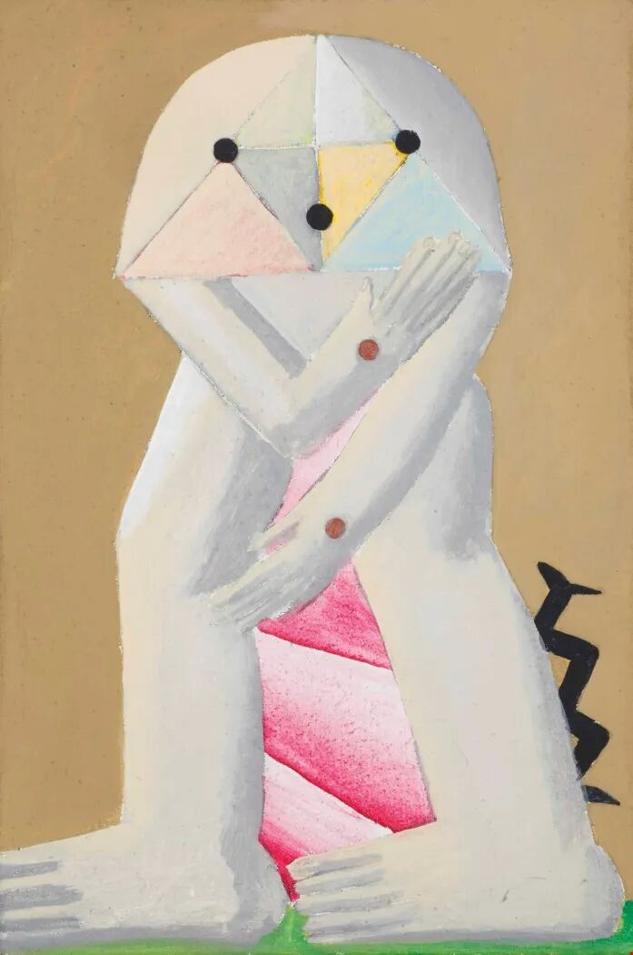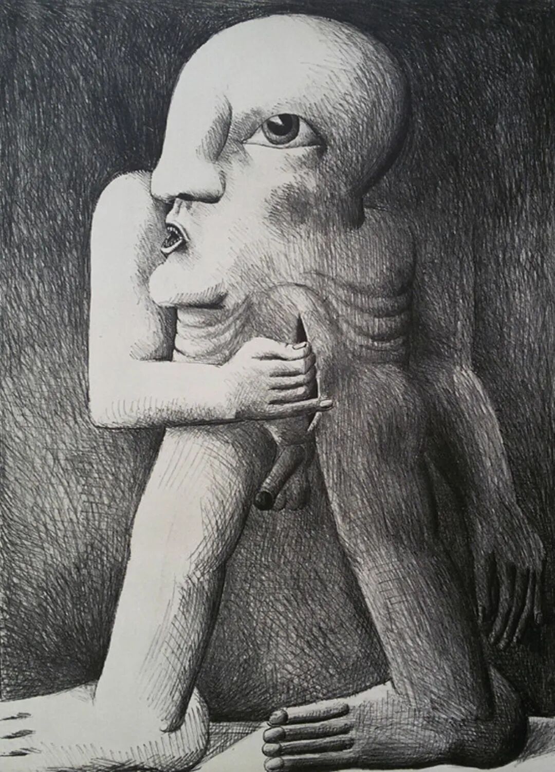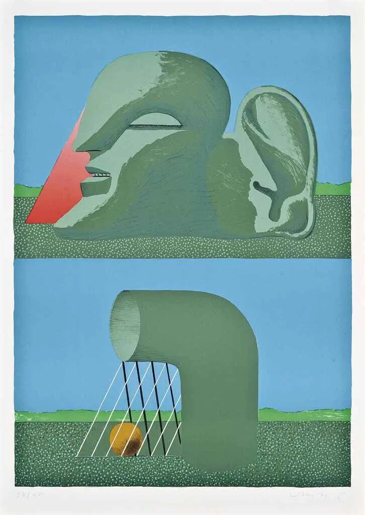 Horst Antes用他神奇的头足类动物创意,多年来激发了他无数次的变化。此后,这些作品不仅以绘画和版画的形式进入世界各地的收藏,而且以雕塑的形式单独或成群被安置。他的许多人物都表现了祈祷或崇拜。在他眼中,这些代表了一个人储存他或她的经历和个人记忆的容器。1980年代初带来了彻底的重新定位。他对1982年野蛮的福克兰战争感到厌恶,他标志性的头足类动物最多只是在密封、简约的建筑图案中出现的幽灵般的剪影。然而,仍在继续寻找人类存在的根本。