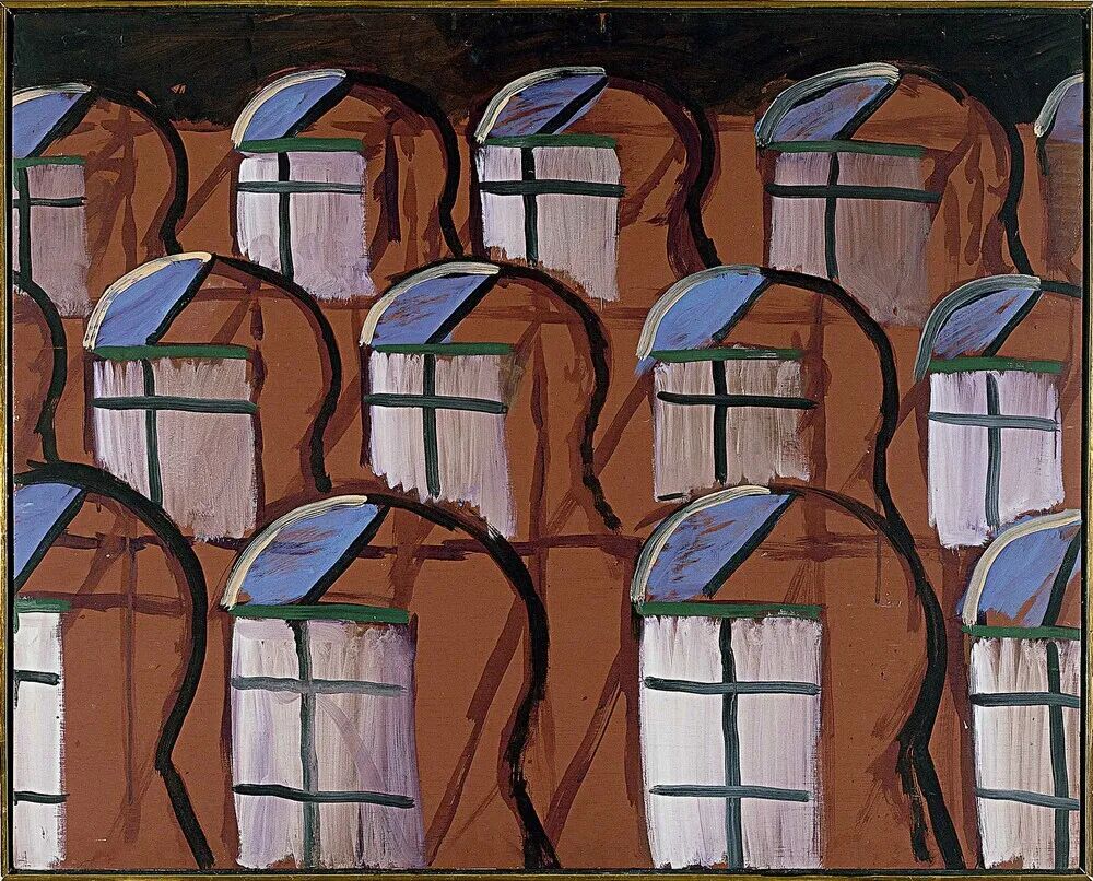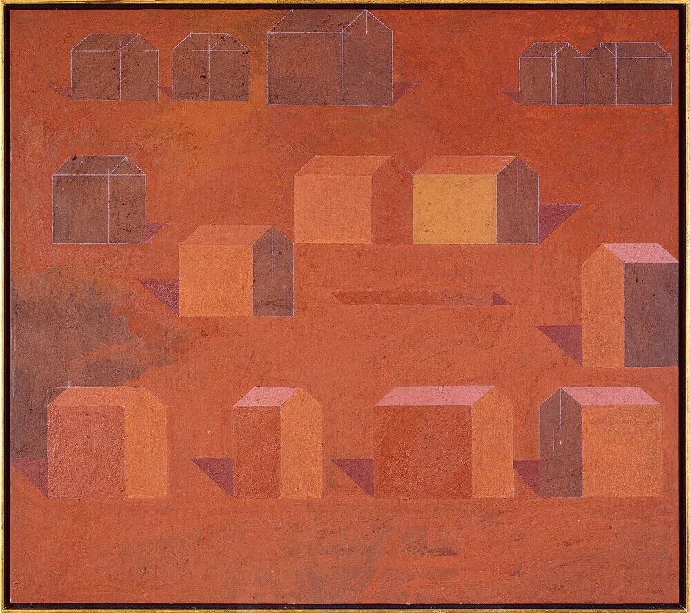 从源自托斯卡纳乡村的房屋开始,房屋开始越来越多地出现在他的作品中,一个,然后是两个,最后是整个系列的房屋,最终形成了整个村庄。这些建筑住宅与人类的存在密切相关,如果不是完全关注人类的存在,它们具有公式化的性质,暗示了人类栖息地本身,我们出生,成年和死亡的地方,以及生命和生活项目体现的地方。