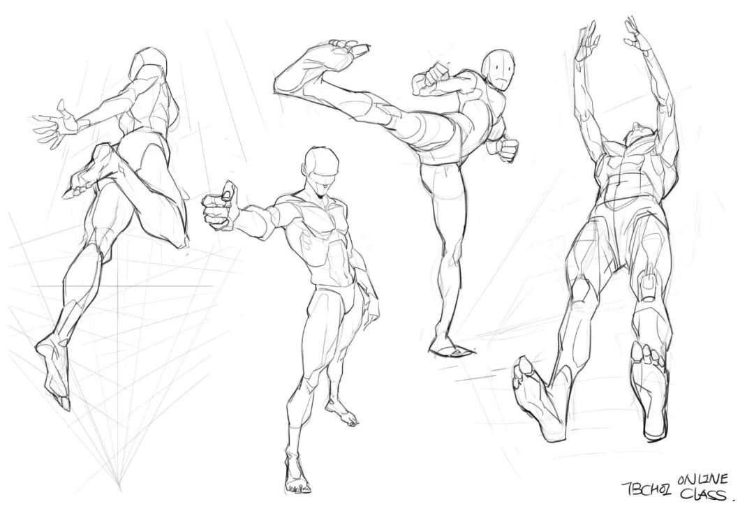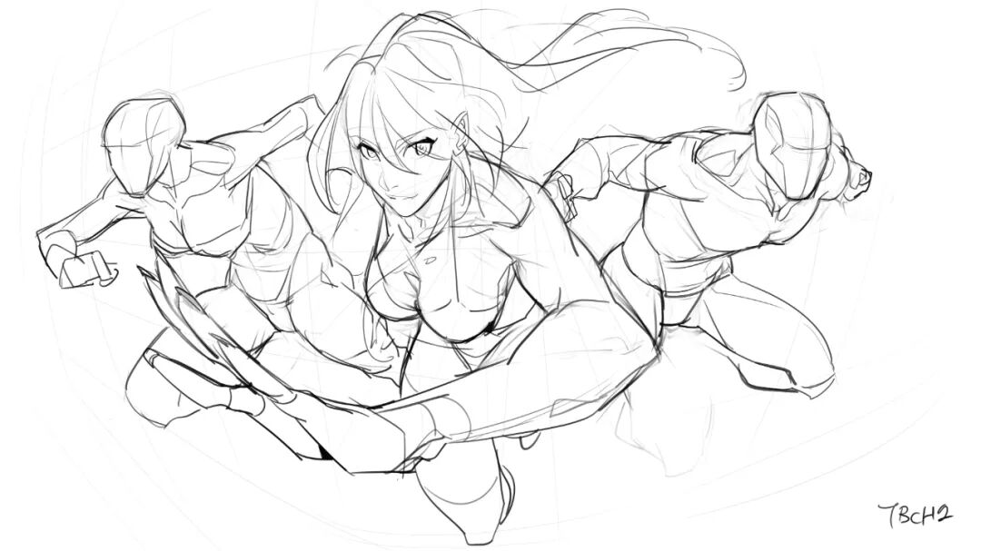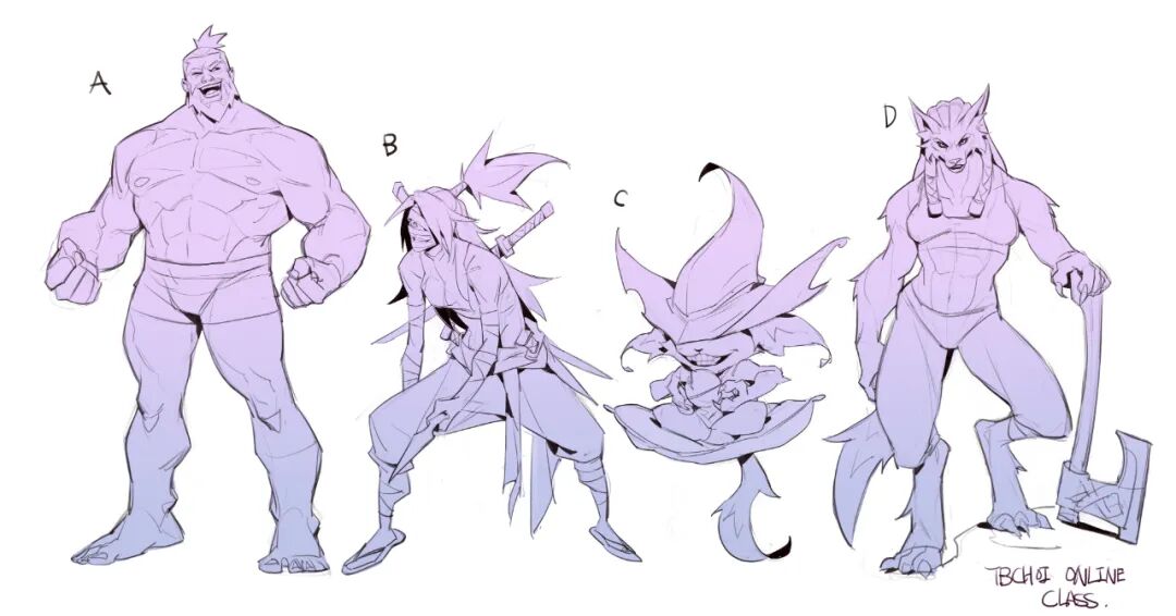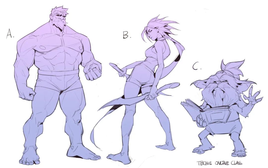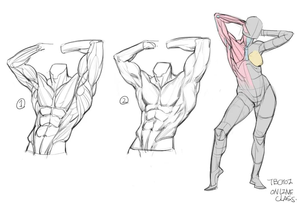 将每个角色原画师都必学的人体知识用美漫风格趣味表达,是她作品的特色,充满张力的线条造就了人体肌肉的线条美,非常值得学习!