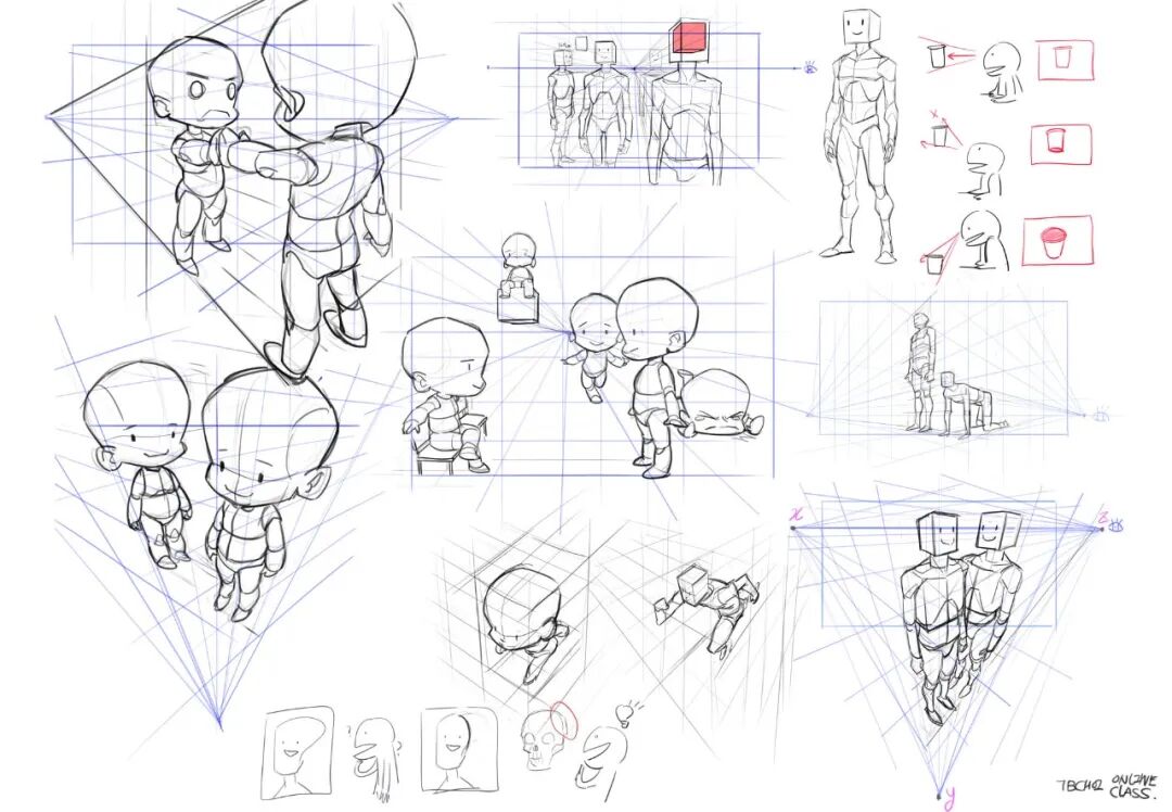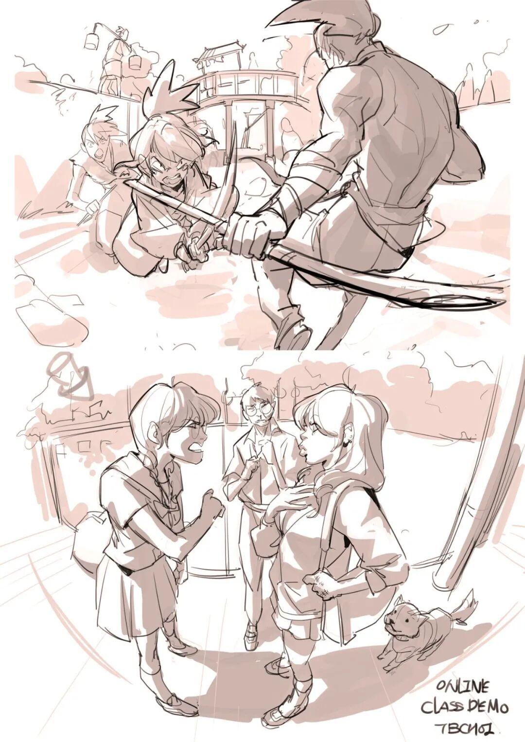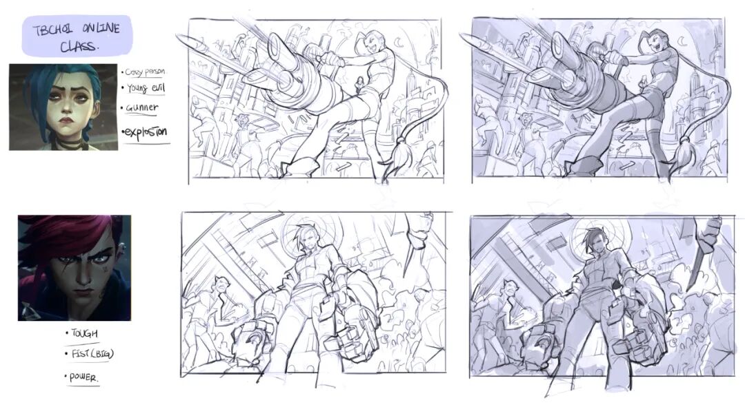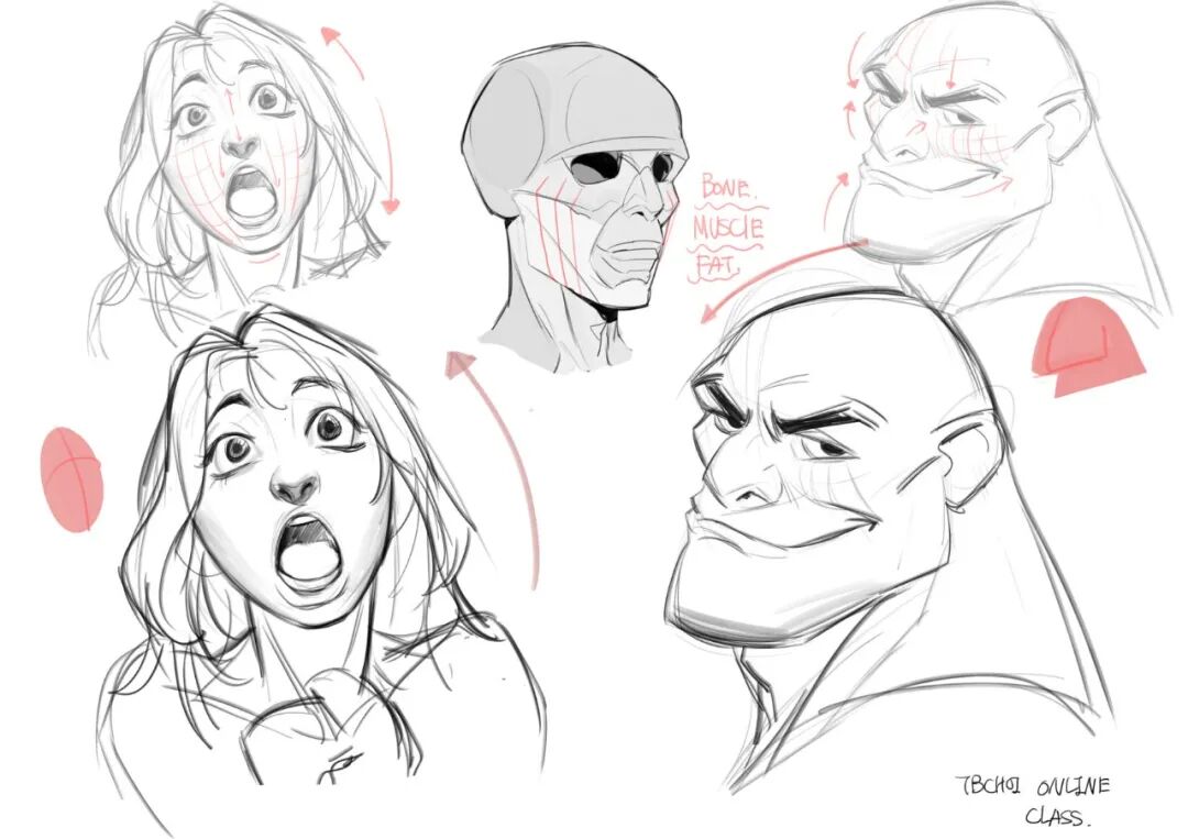 将每个角色原画师都必学的人体知识用美漫风格趣味表达,是她作品的特色,充满张力的线条造就了人体肌肉的线条美,非常值得学习!