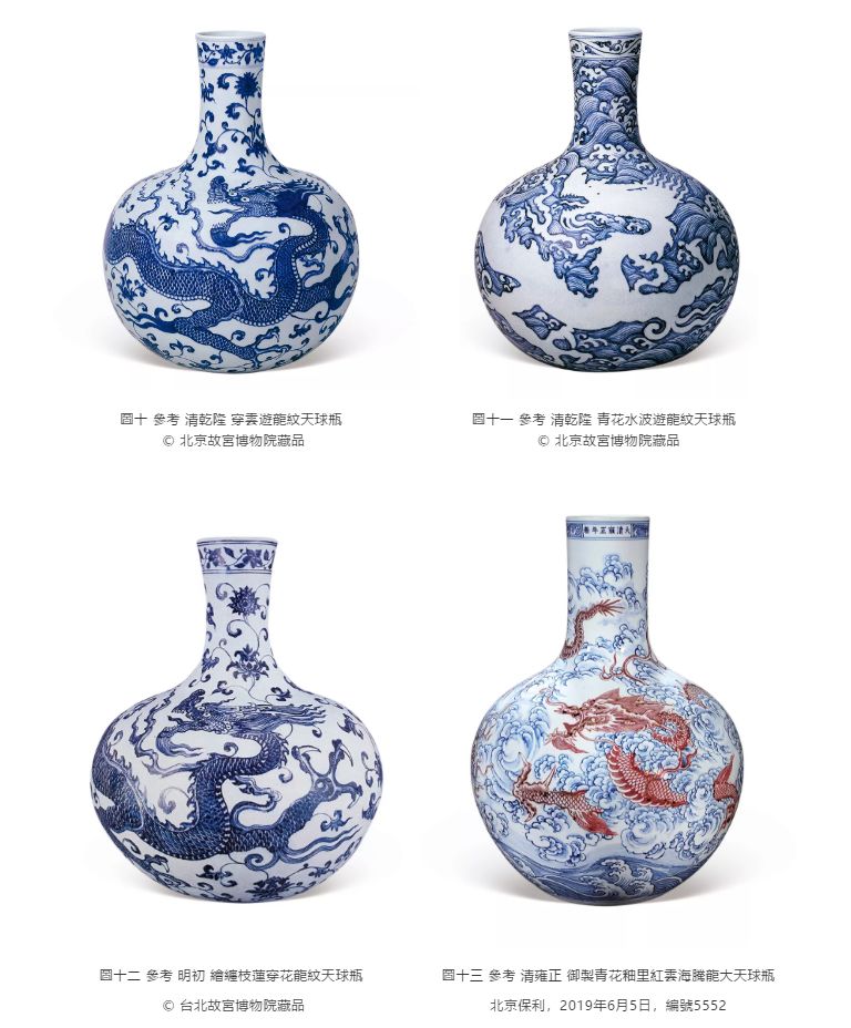 此瓶借鉴清代顺治时期经常使用的“龙身在云中三现”的表现形式,龙身只露出三段,其它部分被浮云遮掩,故称“一身三现”