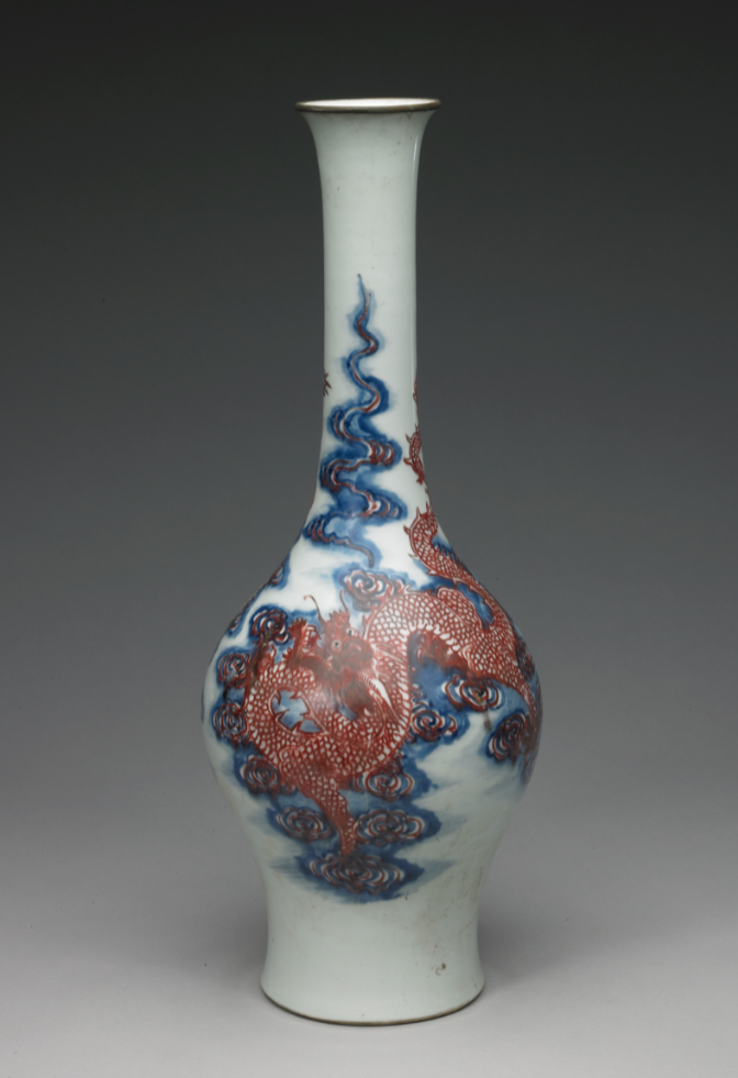 清康熙 青花釉里红云龙纹长颈瓶
