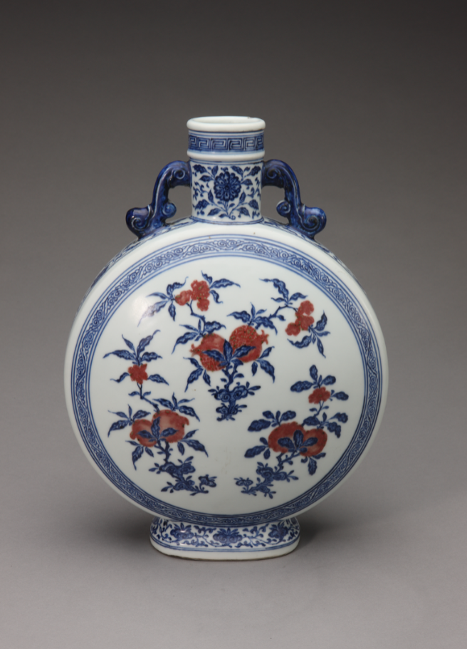 青花釉里红瓷器始于元末明初,至明中后期渐渐消失,到康熙年间才重新烧制成功,清雍正、乾隆年间的作品最为杰出。