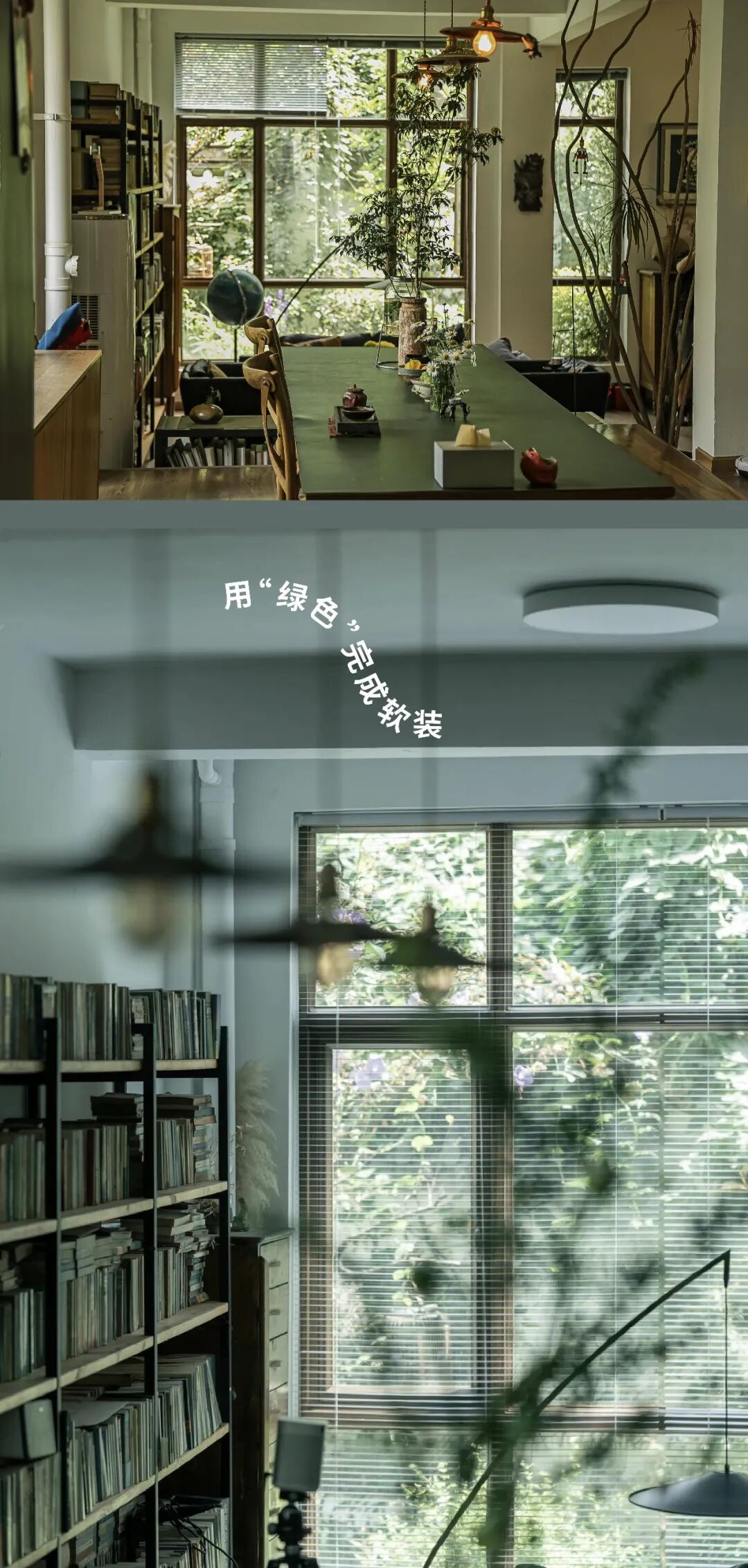 因为硬装预算有限,香香觉得这个空间最好的装饰,除了艺术品,就是从一楼的窗户望出去,每个角度都有深深浅浅的绿意,“如果你把植物撤掉的话,这个房子会至少损失掉50%的美丽”。