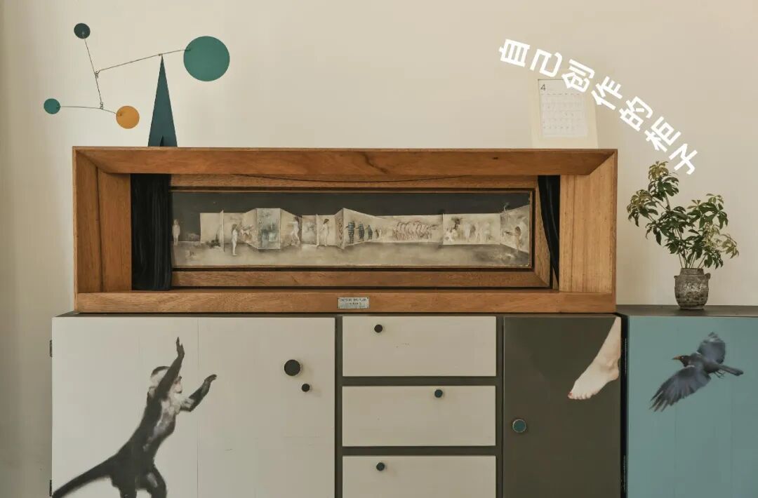 胡顺香非常喜欢“实用美学”的东西,她找朋友定做了一个木质矮柜,在柜子上作了一幅画。“我发现很多我喜欢的人,建筑师也好,画家也好,他们‘狩猎’的范围都不仅仅是在主攻的方向,比如柯布西耶也会画画,弗朗西斯·培根早年也做家居和室内设计。”她眼里的艺术一定是流动的,那些粗犷的、怪诞的、犀利的跨界创作,常令她着迷着迷。