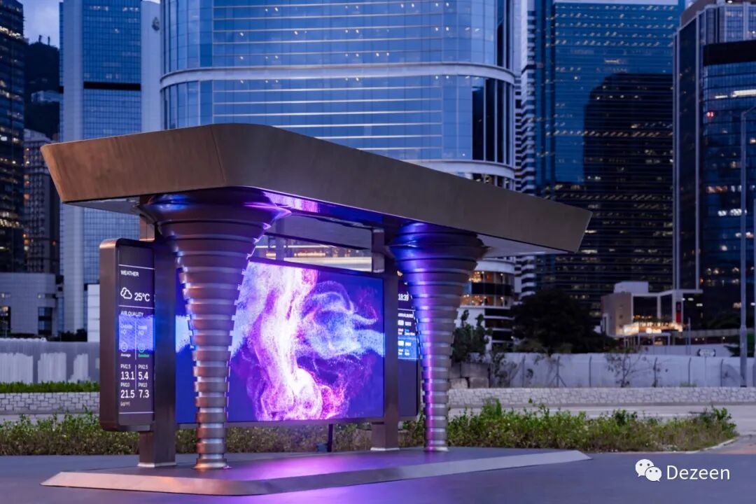 该系统利用安装在顶部的太阳能板发电,并配备物联网,提供实时监控、数据比较和互动显示屏,显示天气、空气质量和公交班次等信息。