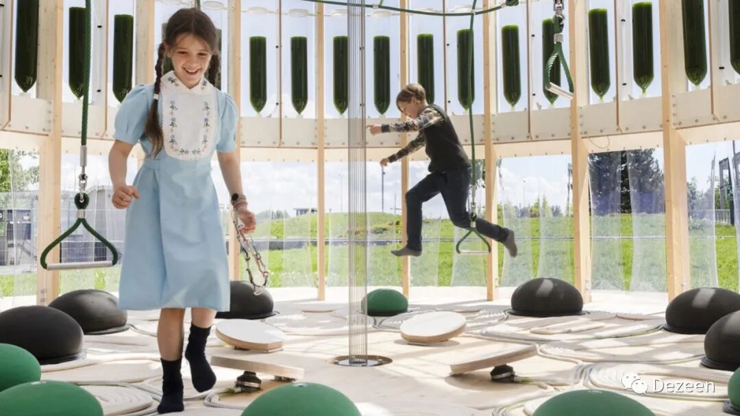 这个名为“气泡”的儿童游乐场,使用以藻类植物为原料的太阳能生物反应器来达到空气净化的效果。