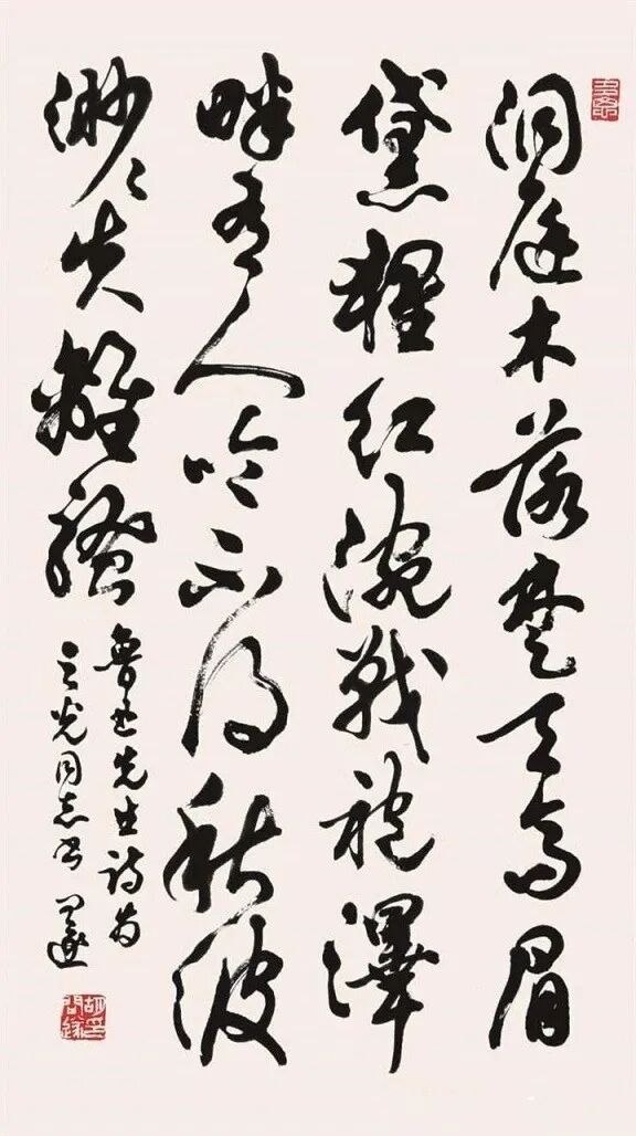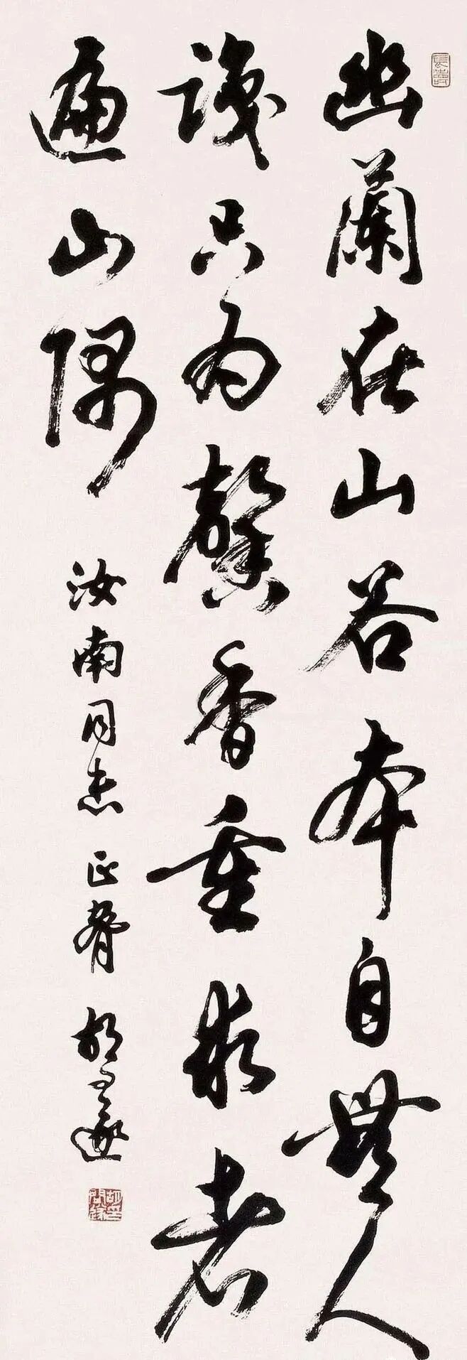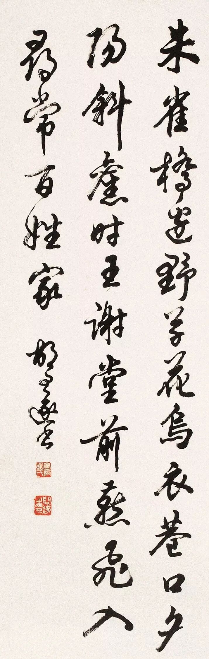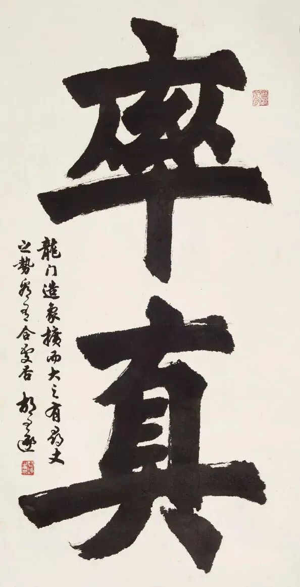 胡问遂早年习柳公权,继颜鲁公,得厚重丰润之精髓。转习褚遂良,得缜密灵动之韵致。后溯“二王”行草,兼及智永、李北海、苏轼、黄庭坚、米芾、蔡襄等,融会贯通,数十年而不懈。其书法浑厚凝重,洒脱灵动,气韵高雅,意态从容。