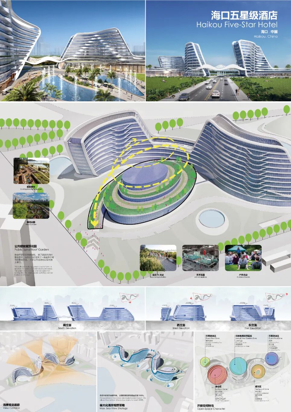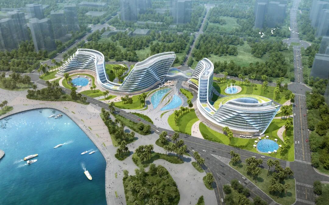 项目位于海口市市中心的滨海区域,基地北侧为海滨公园,基地形状较为狭长,基地建筑覆盖率要求严格,并有城市视觉通廊的保留要求。