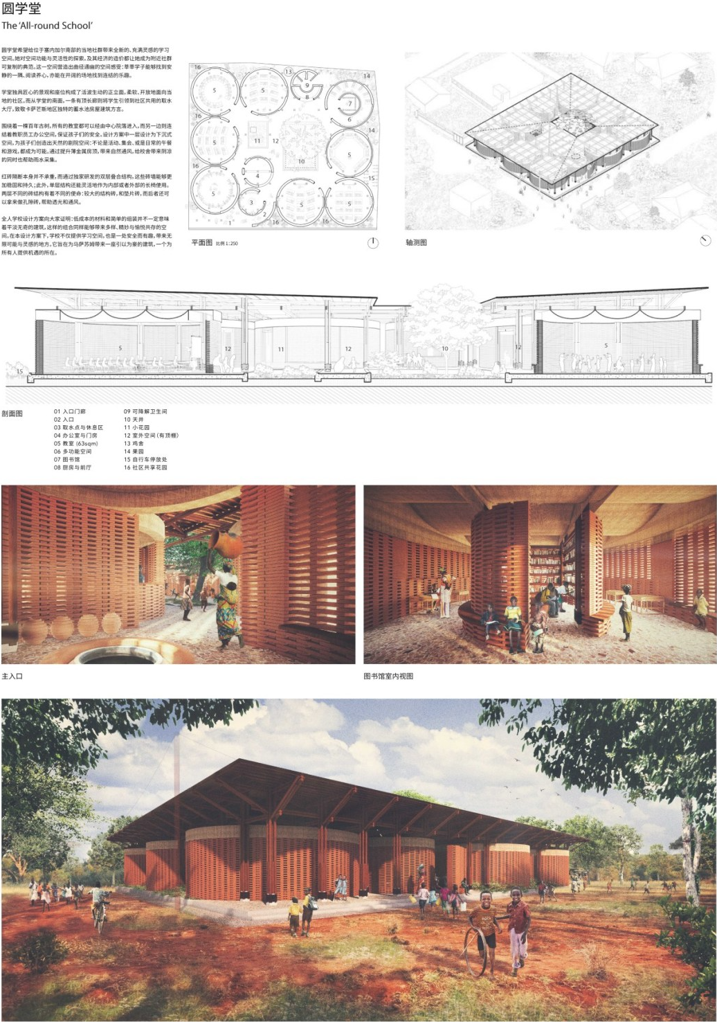 圆学堂希望给位于塞内加尔南部的当地社群带来全新的、充满灵感的学习空间。她对空间功能与灵活性的探索,及其经济的造价都让她成为附近社群可复制的典范。这一空间营造出曲径通幽的空间感受:莘莘学子能够找到安静的一隅、阅读养心,亦能在开阔的场地找到连结的乐趣。
