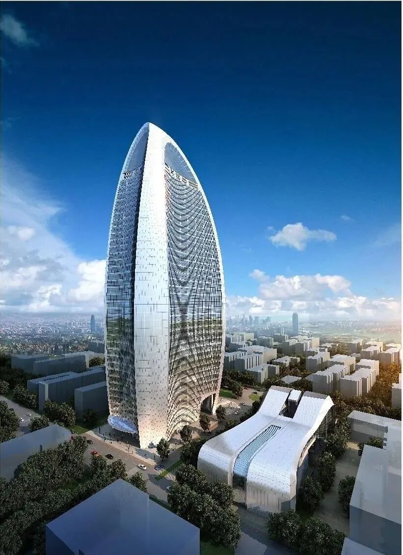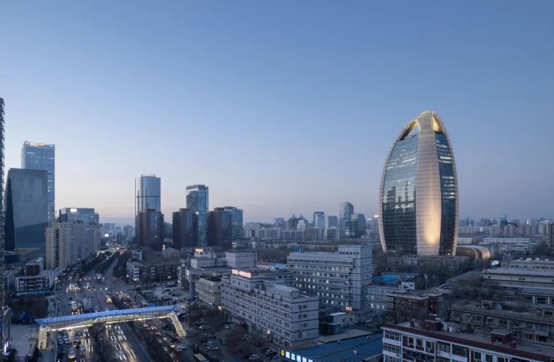 设计力求在当代视野下实现创造性和现代感,同时又能反映历史传统与地域文脉。中国有句古语是“天圆地方”,“天圆”指心性上要圆融才能通达,“地方”指命事上要严谨才成规矩。人民日报大楼采用圆形球体建构,由三个双曲线切割椭球体得来,形体圆润,线条柔和,表现出内敛含蓄的性格特征,同时又遵循严谨的数学几何控制,形成三足鼎立的稳定结构。