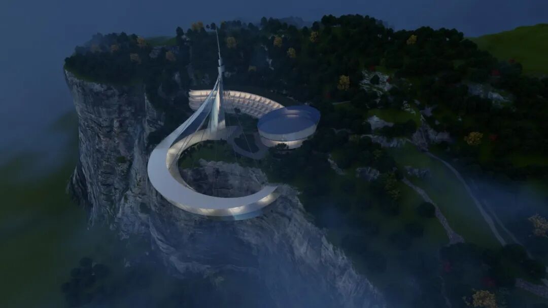 本次酒店设计力图在群山之中创造一处高端度假隐居之所,使顾客在此收获自然的惊喜,体验山间隐居的出世之感。以桥梁施工技术打造悬于悬崖之上的建筑,像一条飘带在山地之间若隐若现。