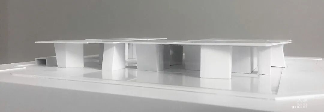 艺术馆内部神秘的光从顶部射下来,营造艺术氛围。同时艺术家提出是不是可以高低错落,于是我们也做了整个建筑屋顶的高低错落。