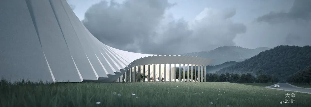 同时我们将展厅结构部分的处理隐藏在屋顶当中,所以建筑的整体像一个抱枕一样,中间比较厚,两边比较薄,也有点像是很轻盈的风筝一样,在整个老街的尽头,在小镇的河边。