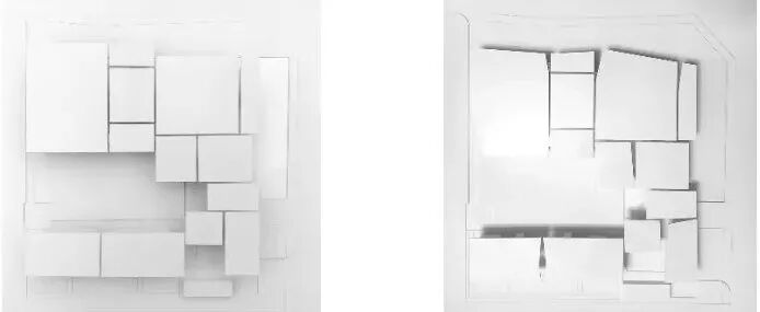 从顶部看,这个艺术馆是由很多展开的灰空间拼接而成。
