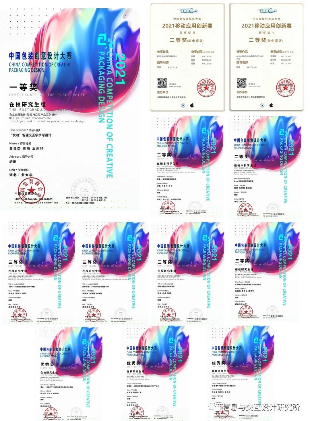 在校期间,我学习认真努力,曾获得校级奖学金。大二下学期,加入I创后,先后参与了“老年人飞行导识设备研究”和“中国传统文化信息可视化研究”等课题,两年期间, 陆续收获了一些设计奖项和专利之类的学习成果。很开心能够有机会和如此优秀的团队一起做项目,一路走来,收获颇丰!