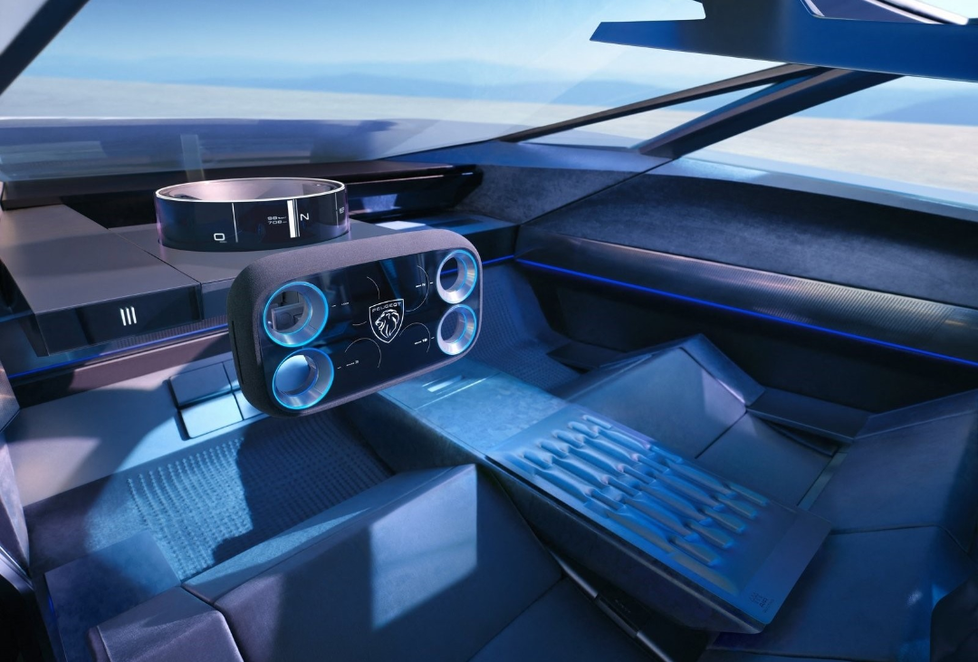 面对屏幕带来的复杂度,标致Inception的座舱理念i-cockpit则采用了“化”的方法,将交互内容“打碎”,让信息界面散入内饰各个部件,甚至外饰的细节中,成为有机的组成部分。车门上的条带状界面显示了车辆的基础信息,方向盘上的信息界面支持快捷的手势操控,前方的环形仪表则可以显示重要的驾驶信息,而这些都不影响副驾和后排乘客各自对屏幕的使用。在很多对手致力于营造“多人同乐座舱”的时候,标致独具匠心地瞄准了“每个人的独乐座舱”。