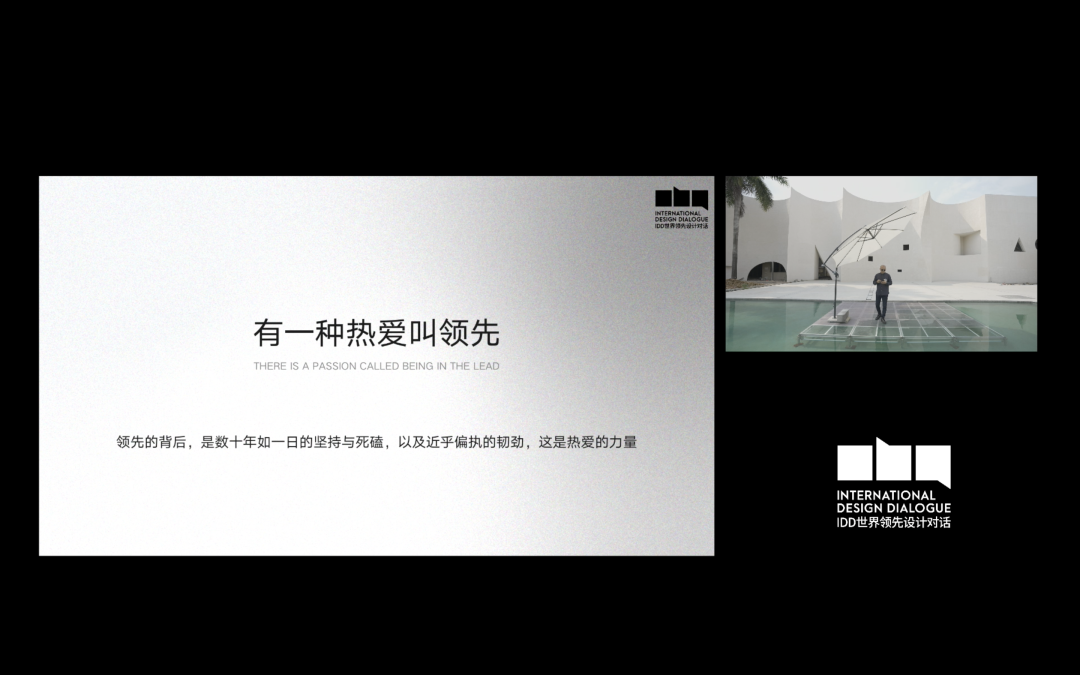 IDD世界领先设计对话以「MASTER MIND巨匠的思索」为思想探寻的主旨方向,希冀通过与世界领先设计巨匠对话,探索世界领先设计思想,以世界领先推动中国领先,以中国领先影响世界设计。