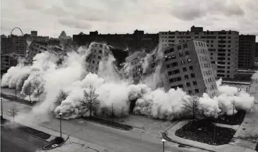 1972年7月15日,美国密苏里州圣路易斯城一组现代主义建筑被炸毁拆除。这一事件被后现代建筑理论家查尔斯·詹克斯叙述为现代主义建筑的“死亡”。