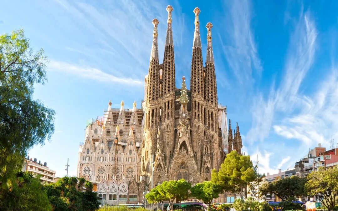 圣家族大教堂始建于1882年,直至建筑师高迪74岁(1926年)去世时,教堂仅完工了不到四分之一。此后的建造时断时续,直至今日仍未完全建成,但圣家族大教堂早已成为巴塞罗那的地标性建筑。