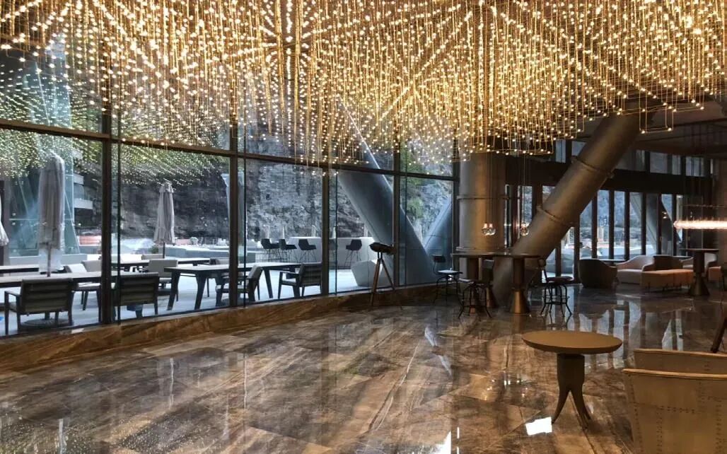 马丁·约克曼:深坑酒店与人们创造的完全独一无二的环境有关。它实际上不仅影响人们的所见所闻、亲身经历等事物的现实存在,也影响了人们的感受和情感。身临其境,你受到了独特环境的触动,如采石场本身、岩石、瀑布、水泊。身在其中,看到了它的好,使人放松。所以,这是最初设计的目的:创造不同寻常、独一无二的环境,使人们想要置身于此,度假休闲放松,远离现实的世界。这是幻想中的世界,它不是主题公园,它的主题是自然,是它所在之地,对于进入的人有真切的影响,花时间体验普通的生活活动,让人们感到神清气爽,而这也是我们的本意。
