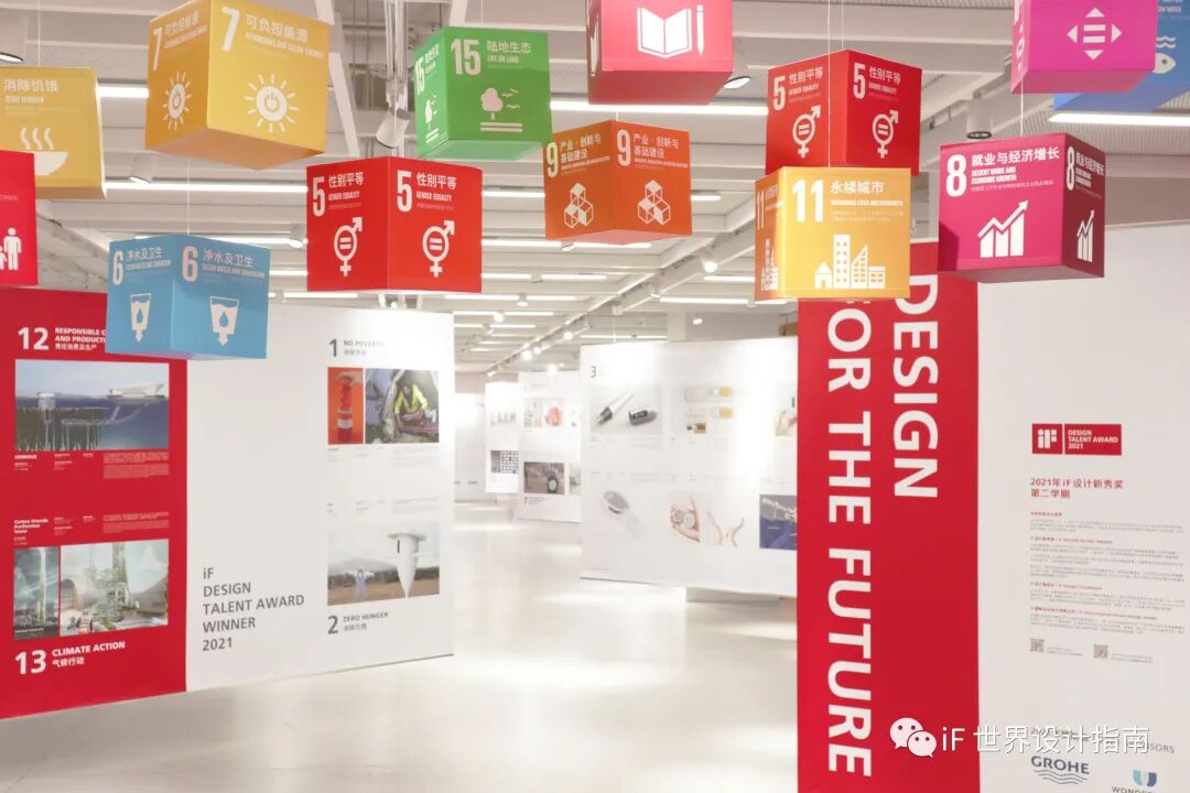 即日起,2021 年 iF设计新秀奖第二学期 75 件获奖作品于 iF成都设计中心一层 E2/E3 区展出,我们邀请在校学生与社会大众前来关注新一代年轻设计师为解决全球挑战而投身于当前社会及可持续发展问题的责任感,以及对联合国可持续发展目标的探讨与思考。