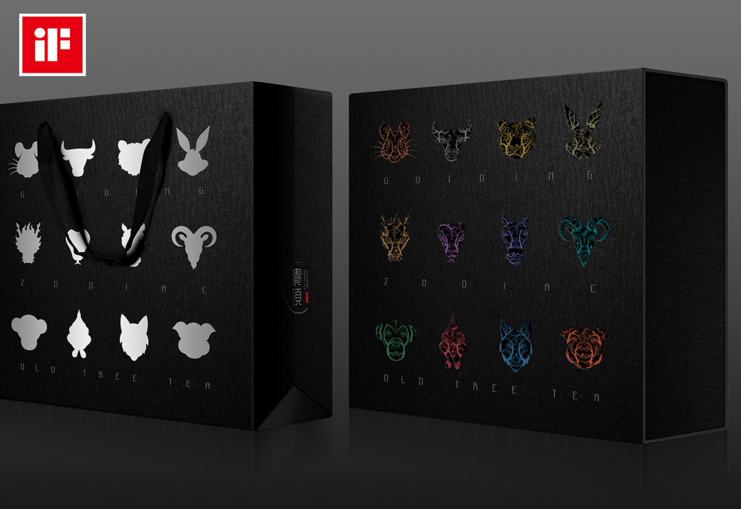 在漫漫五千年的岁月长河里,茶,始终氤氲着中国的味道。贵顶生肖古树茶,是一款独具中国文化特色的云南红茶,设计师巧妙的将中国传统文化元素十二生肖与中国茶结合在一起,用镂空设计呈现出一颗颗栩栩如生的生肖古茶树。色彩为生肖各自代表色,多样轻快,文化韵味十足,趣味生动。