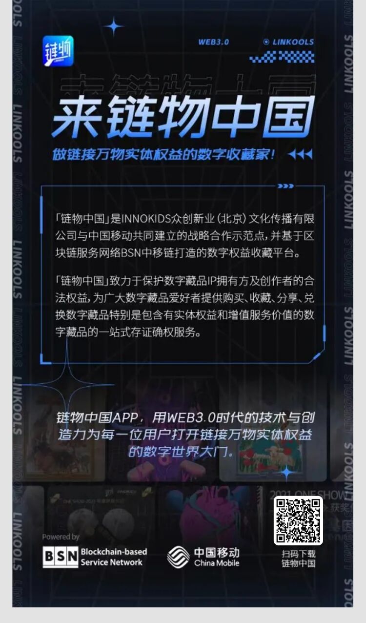 11月20日,首个由Innokids与中国移动区块链携手打造的数藏平台——「链物中国」正式上线,开起了以央国企官方IP和优质年轻创作者共创,并主打可包含实体权益以及可赋能各个企业进行市场营销和用户运营的合规数藏平台新时代。